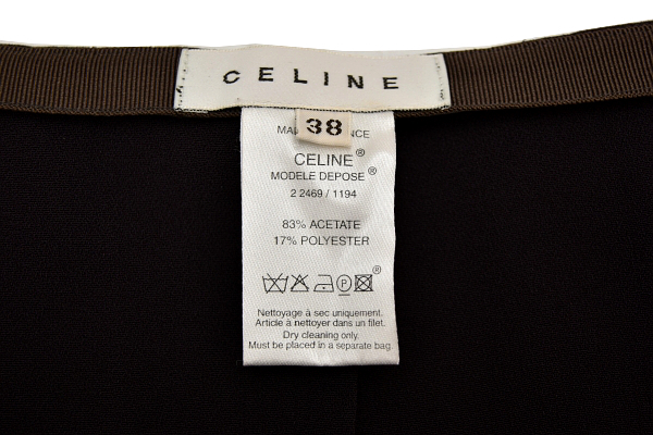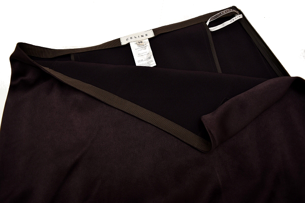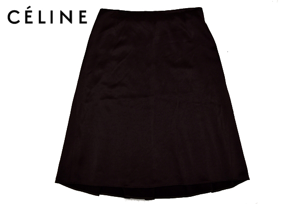 M-955★送料無料★CELINE セリーヌ LVJグループ★正規品 フランス製 ダークブラウン 表面光沢 後ろプリーツ ひざ下スカート 38