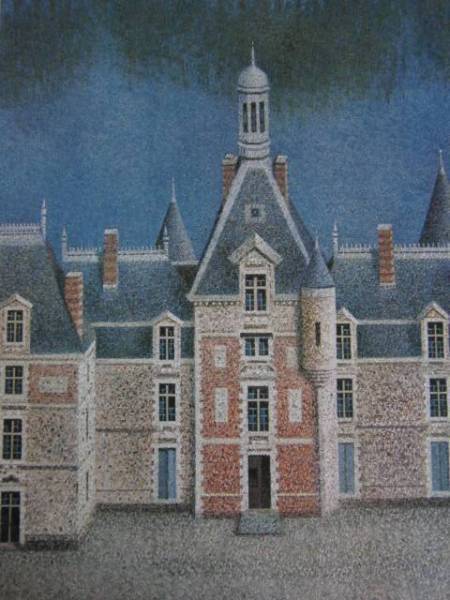 西村 龍介、白い城 部分、希少画集画、新品額装付、状態良好、送料込み、y321