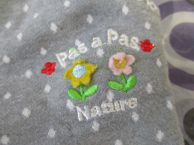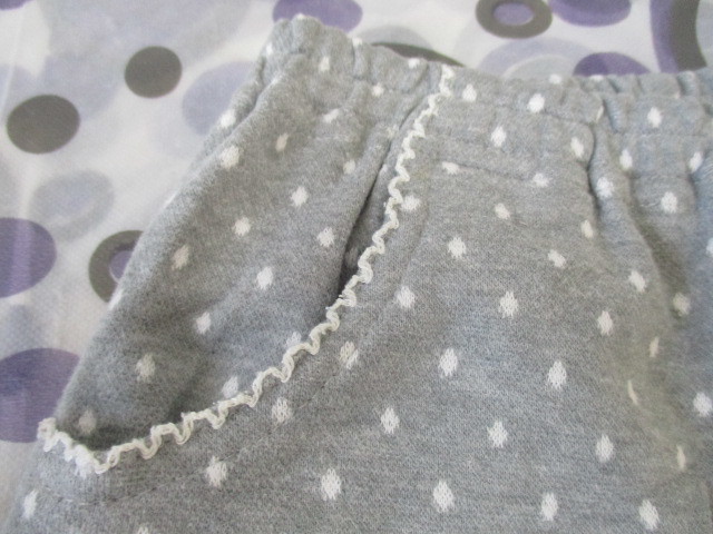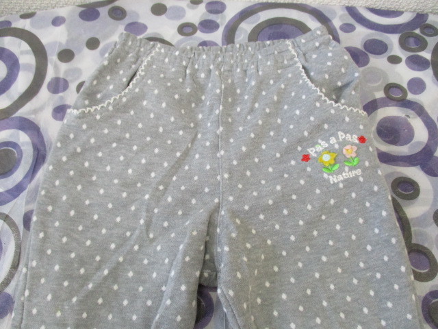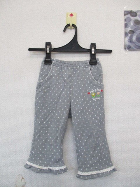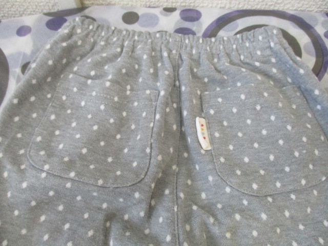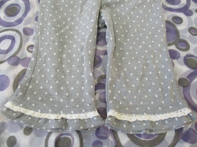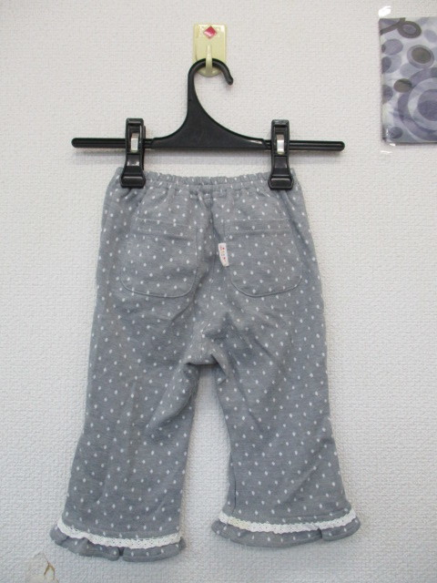 ★ベビー女の子 長ズボン お花ワンポイント グレー×水玉(90)