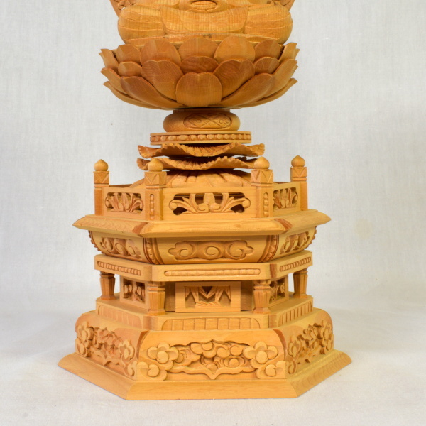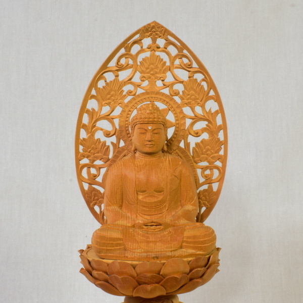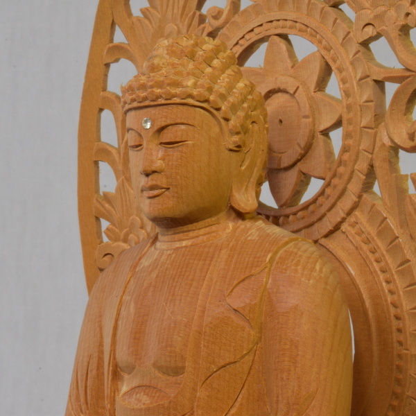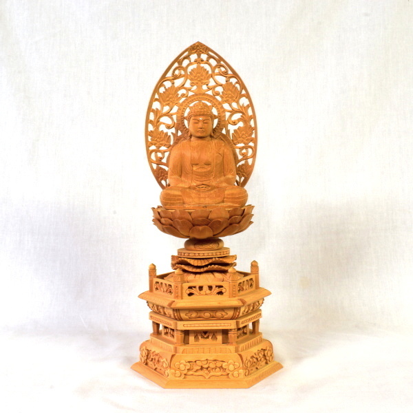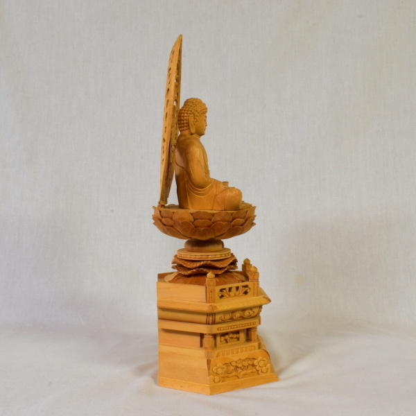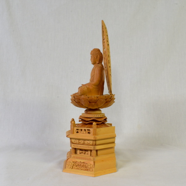 商品説明 | 【サイズ】 全体 横幅 約 16cm 奥行 約 12cm 高さ 約 34cm 仏身 全高 約 11cm 材質 桧木 (ヒノキ) |