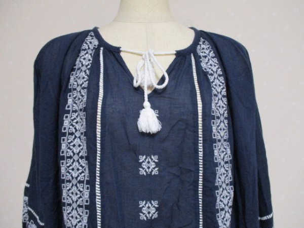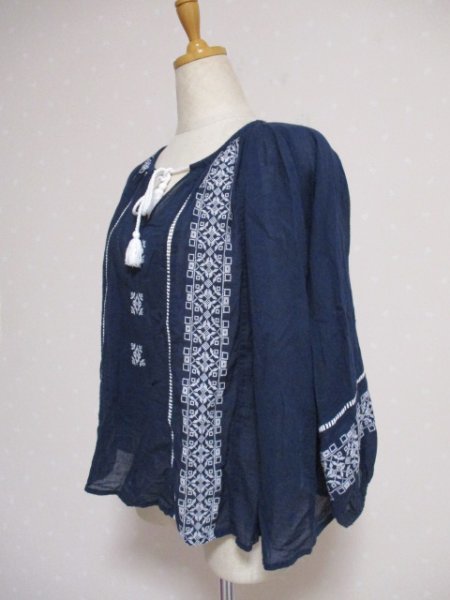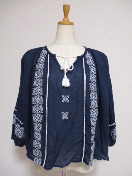 ★S・T・B ★涼しい ゆったり コットン 刺繍入り7分袖 M~L 紺 (10712)レディース
