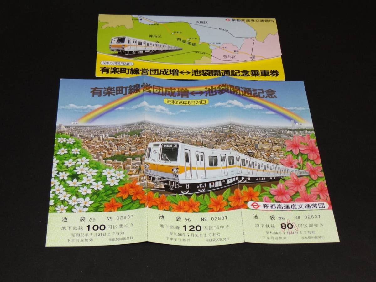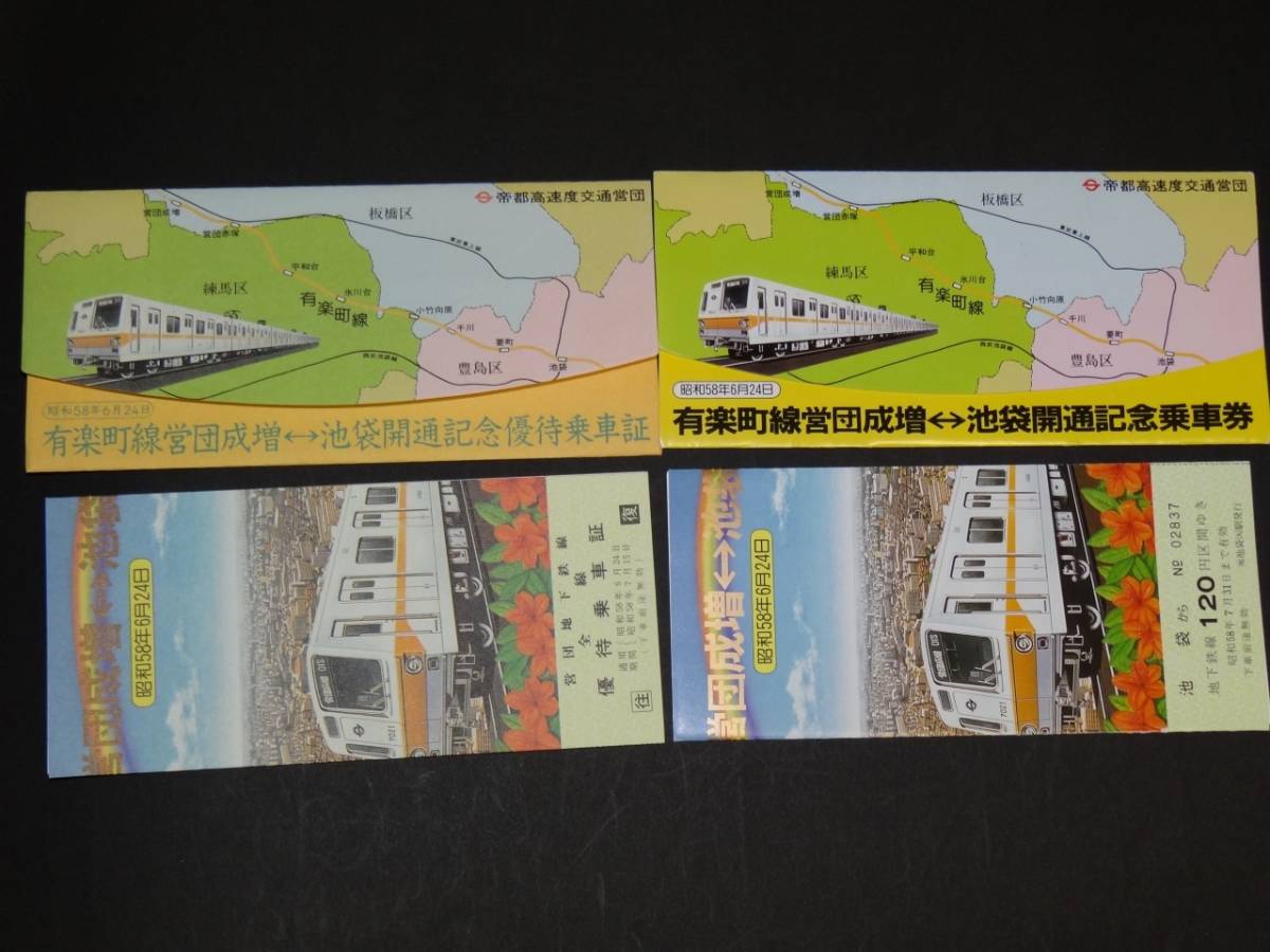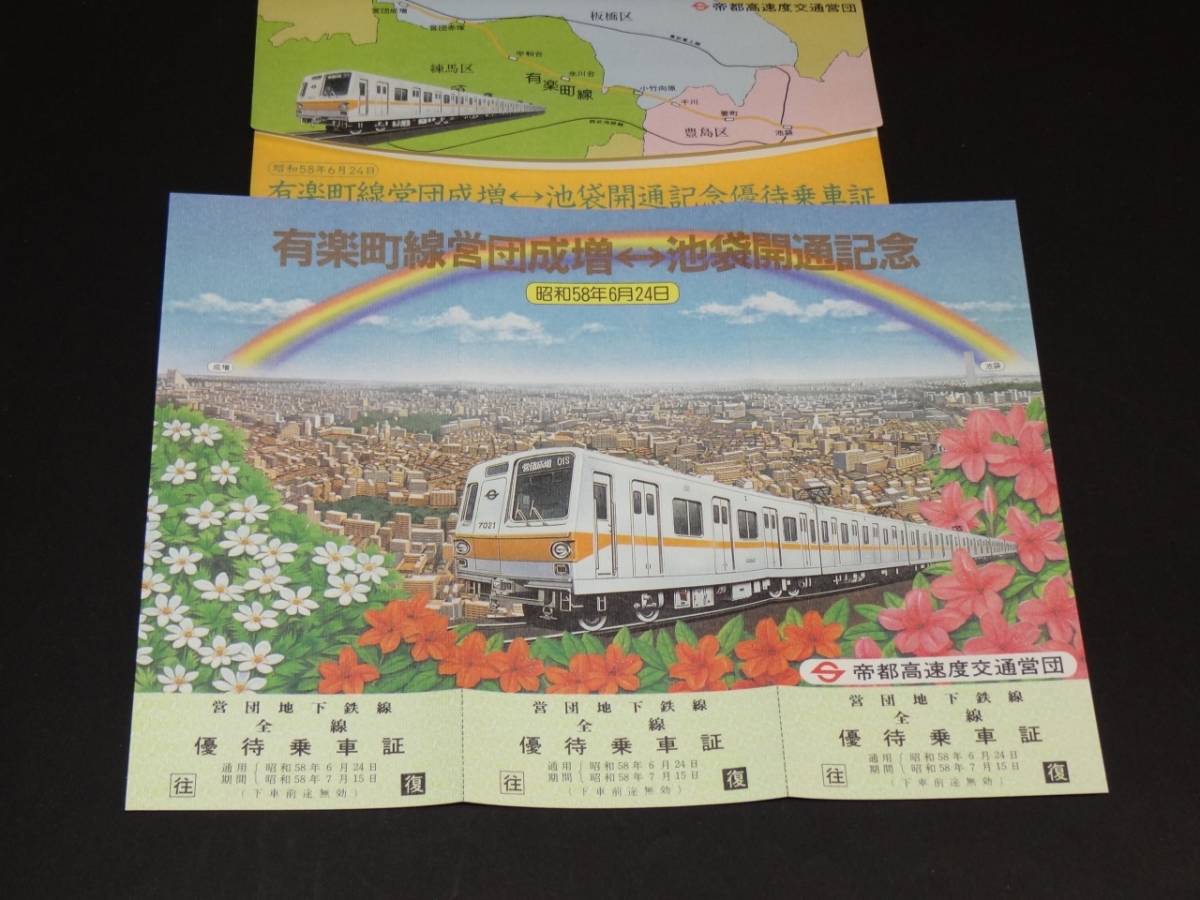 【営団地下鉄】有楽町線営団成増-池袋間開通記念乗車券/記念優待乗車証 S58 2種