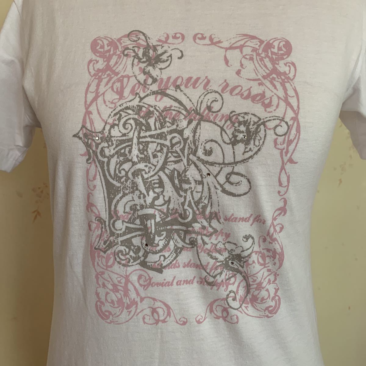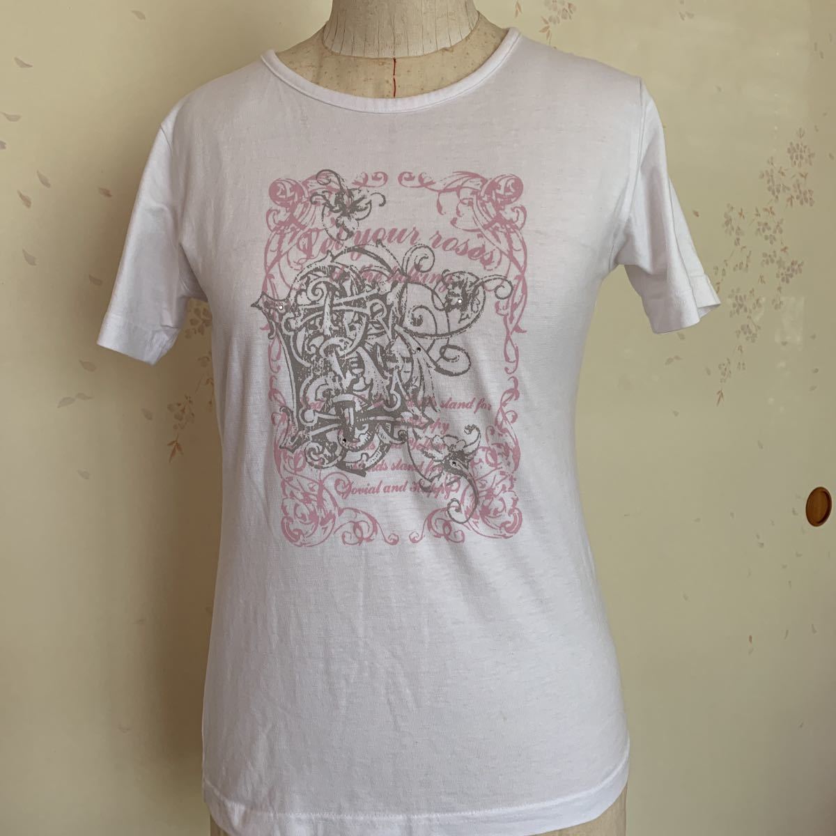 白Tシャツ前身頃柄光るストーン付き Mサイズです。