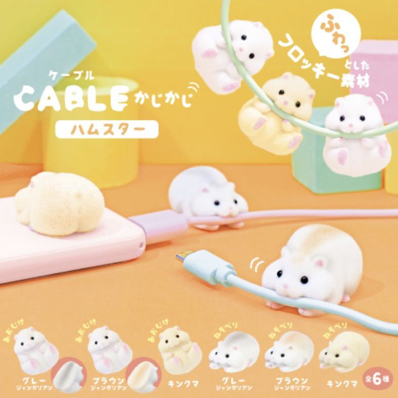 ★フィギュア★ケーブルかじかじハムスター フロッキー素材 ガチャガチャ あおむけブラウンジャンガリアン