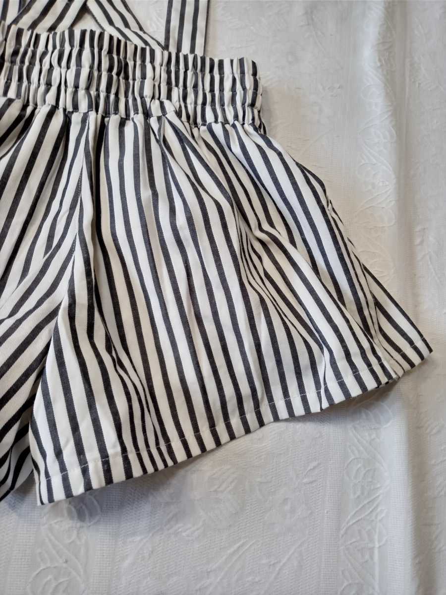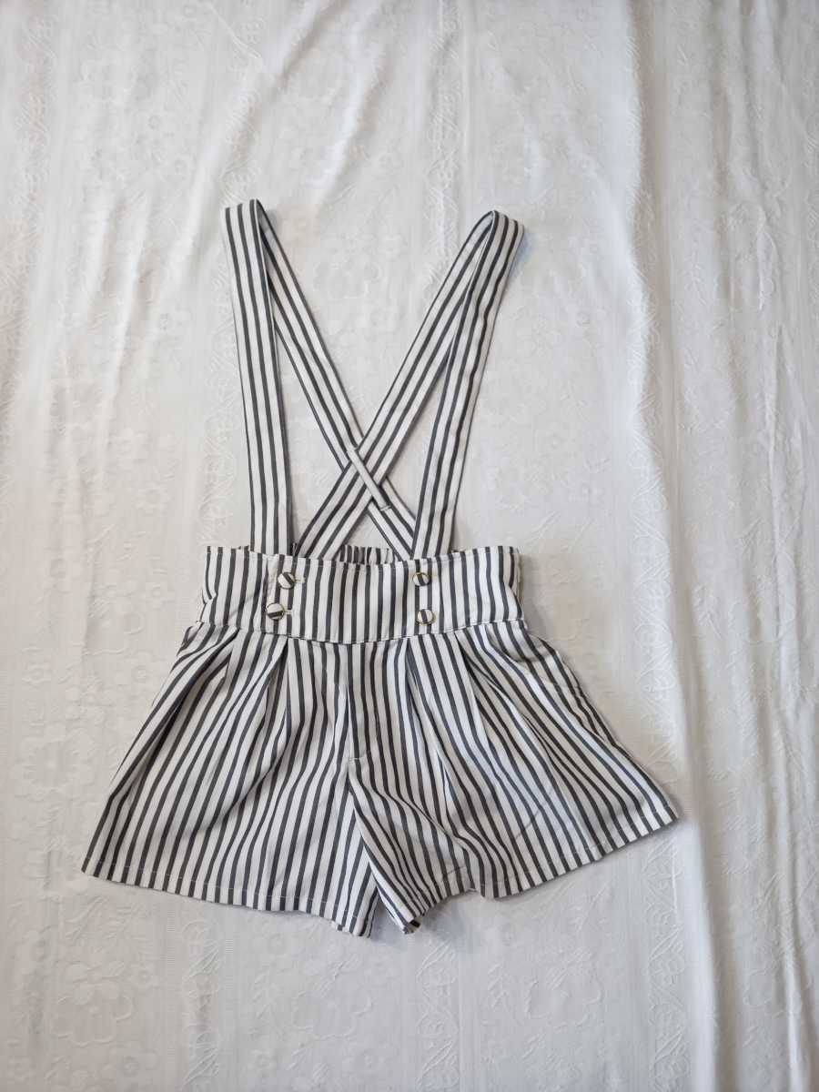 ホワイトにグレーのストライプのステキなサスペンダー付きショートパンツです。