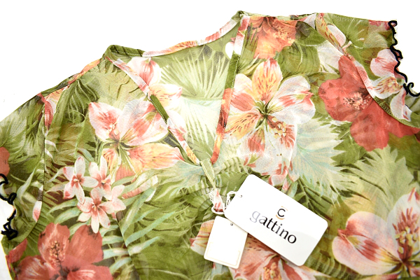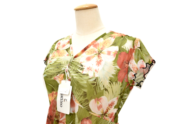 O-300★送料無料★新品★gattino ガッティーノ M brighten★花柄 シースルー ストレッチ ミニ 1分袖 ワンピース チュニック フリー