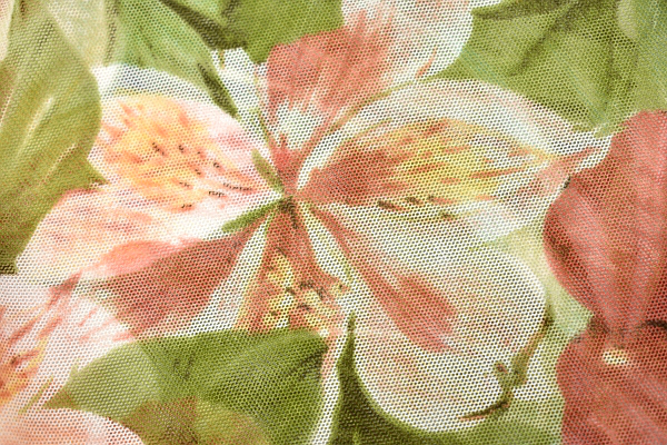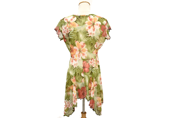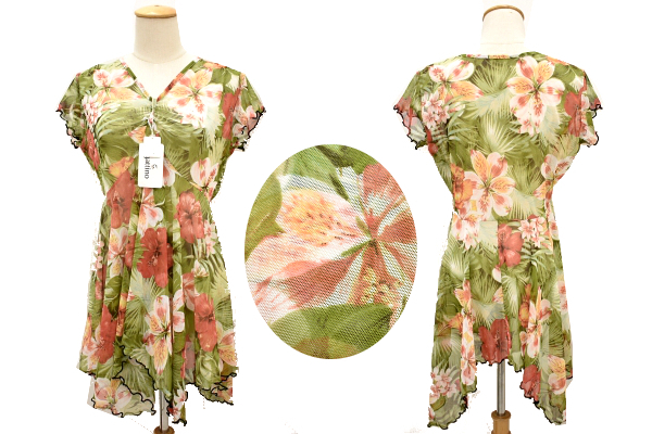 マルチカラー 花柄 シースルー 春夏向き 裏地なし 下げ札あり ストレッチ素材 1分袖 ミニ ワンピース チュニック