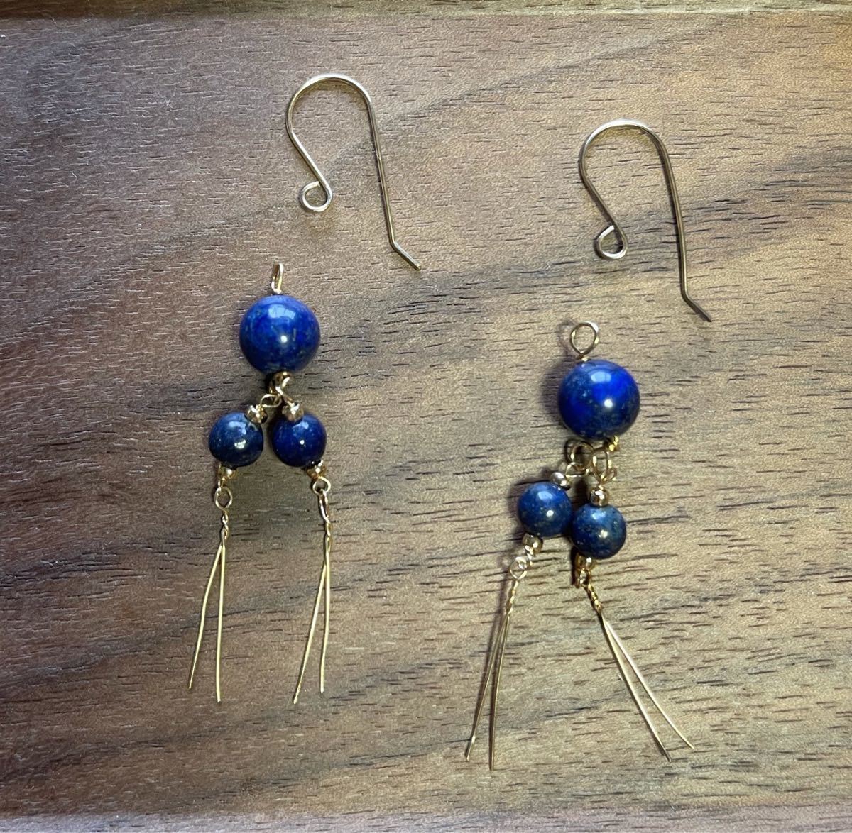 12月と最近は9月の誕生石としても、お楽しみいただけるラピスラズリを、フリンジピアスイヤリングにお仕立て致しました。