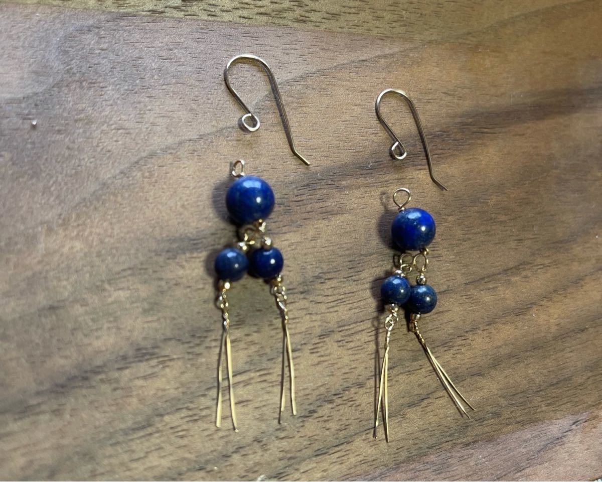 No.37 ラピスラズリのフリンジピアスイヤリング 14kgf