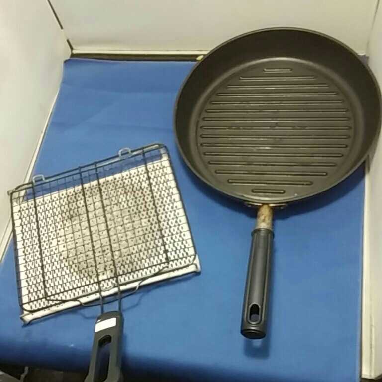 ダイヤアルミのフライパンとさかな焼アミのセットになります。本品長期間保管していた品なので、商品詳細は不明です。現状態のお取引になります。