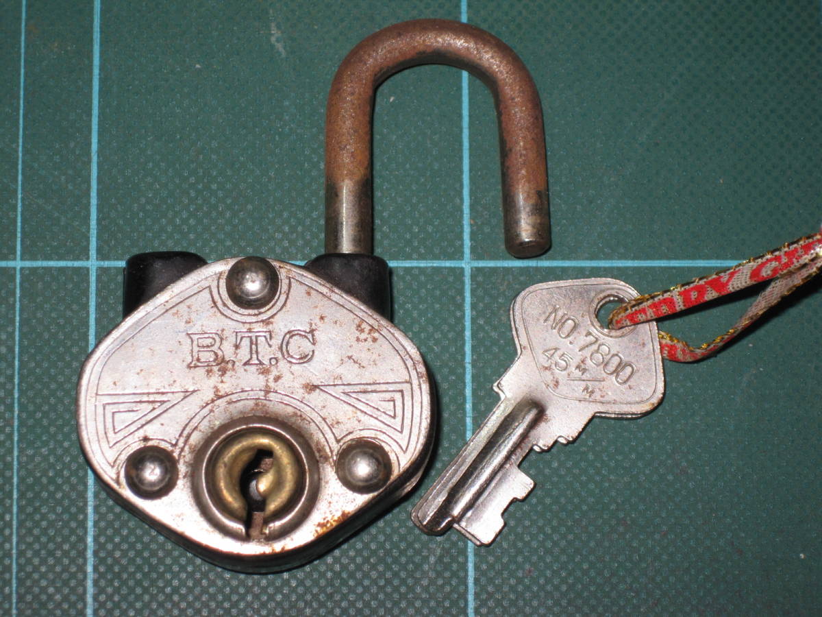 レトロ南京錠#7 B.T.C 錆あり 裏黒
