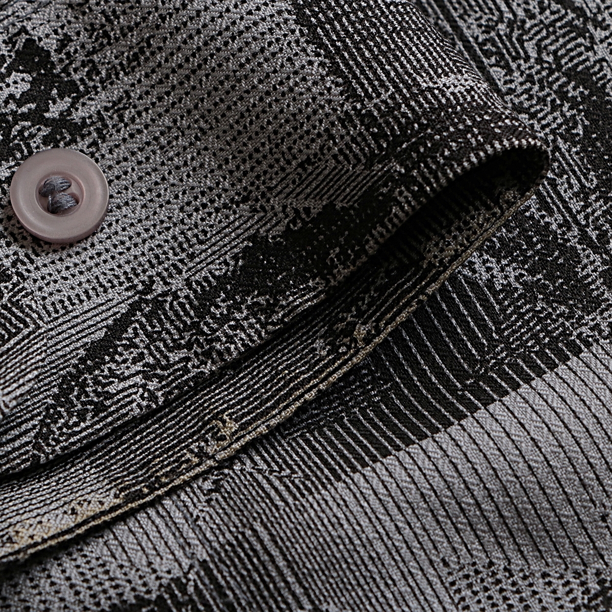 大判の格子上に描かれた筆使いが水墨のような雰囲気ある柄です。