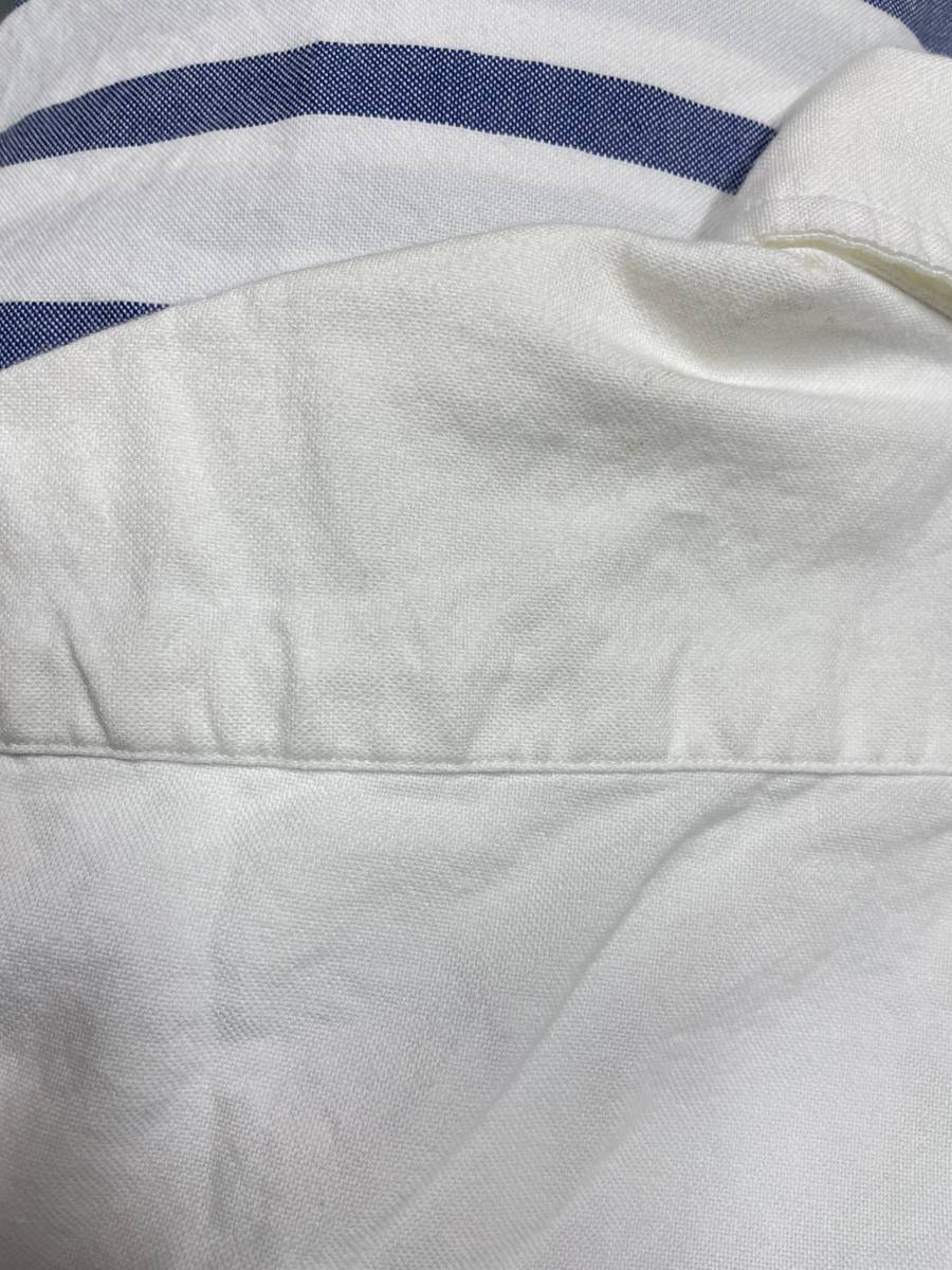 アクセス頂きありがとうございます。 こちらはアメリカ買付新品アウトレット ラルフローレンRalph Laurenの半袖ボタンダウンシャツ。 程よい余裕のあるスタンダードなシルエット。 コットンのボーダー柄オックスフォード、 左胸にはポケット付き、ボタンダウンカラー。 生産国/ MADE IN CHINA 素材/ 100% COTTON (US) M 着丈 (cm)76 身幅 (cm) 58 肩幅 (cm)47 そで丈 (cm)23 *着丈:背面襟元中央~裾まで直線、身幅: 脇下~脇下まで直線、 肩幅: 肩先~肩先まで直線、袖丈:肩先~袖口まで直線、裄丈:背面襟元中央~肩を通って袖口まで *サイズは慎重に計測しておりますが、計測方法や商品の材質、 体差で誤差が出ることがございますのでご了承ください。 アウトレット理由 背面左肩に汚れがあります。 0104380 その他、多数出品しております。 こちらもご覧下さい |