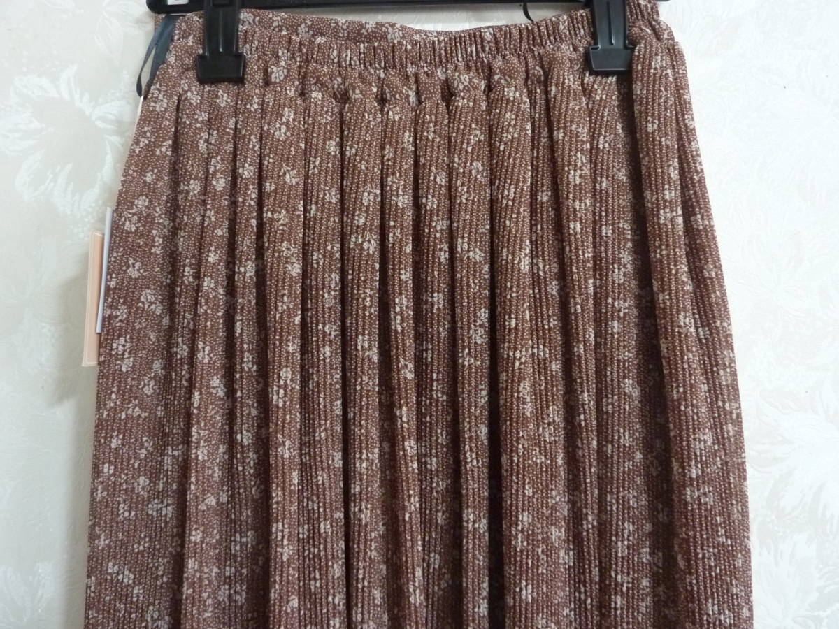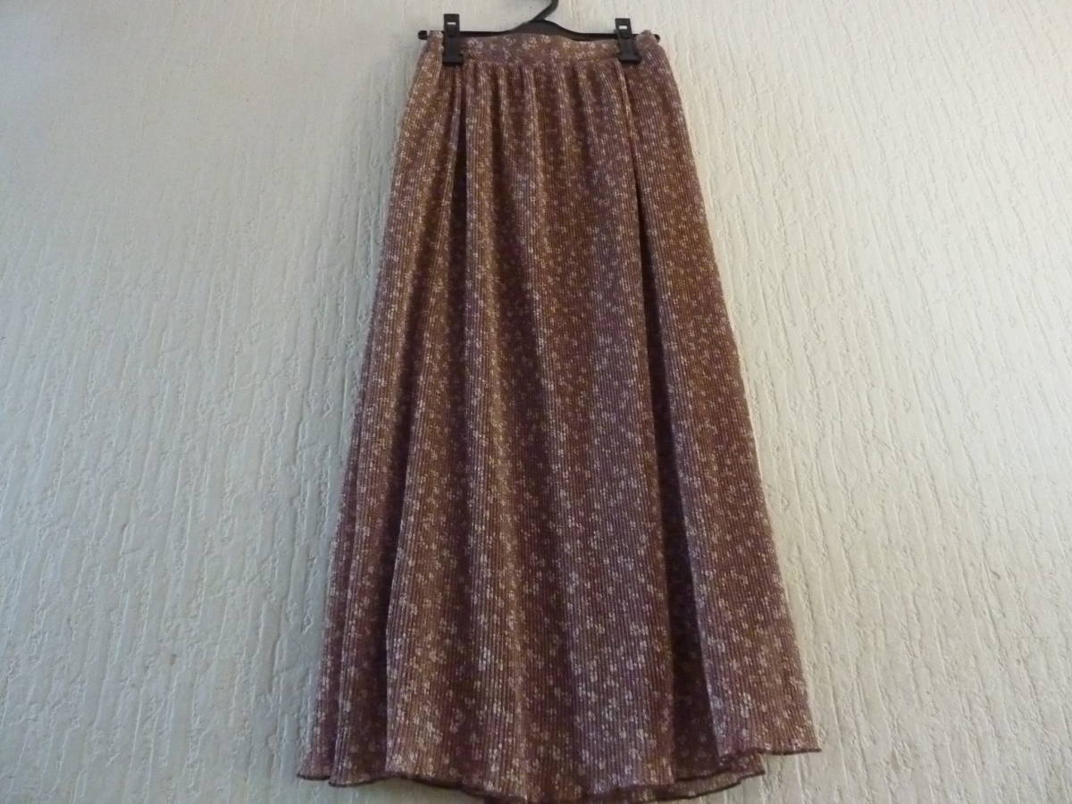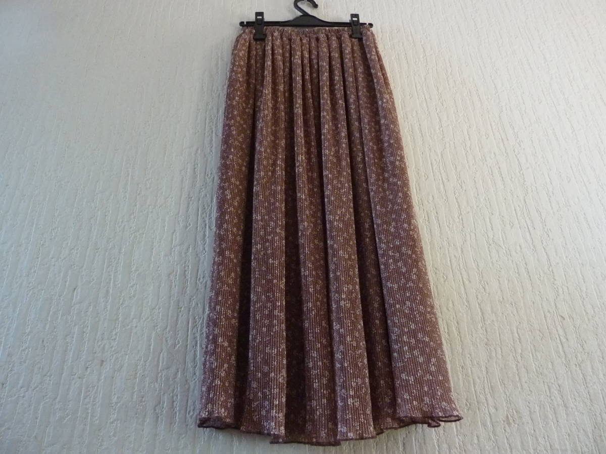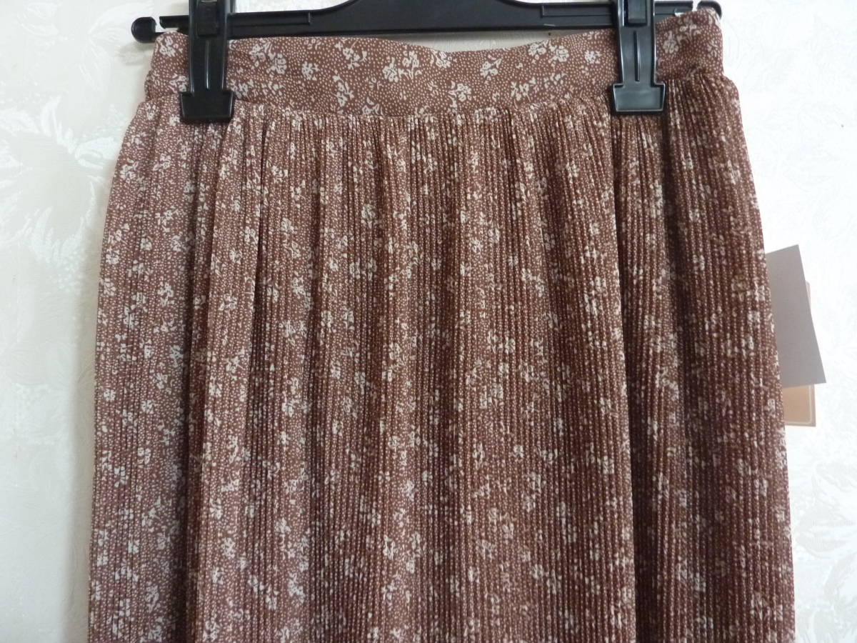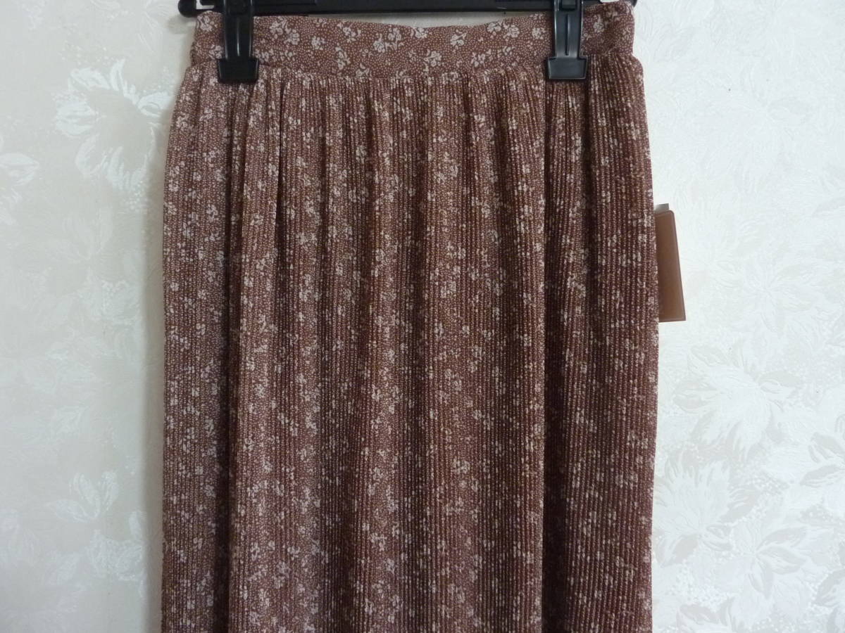 ★SALE★マイクロ プリーツスカート【小花柄】★ブラウン系【赤茶色】★レディースサイズM★肌触り最高☆はき心地抜群★新品未使用タグ付★