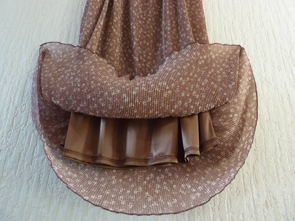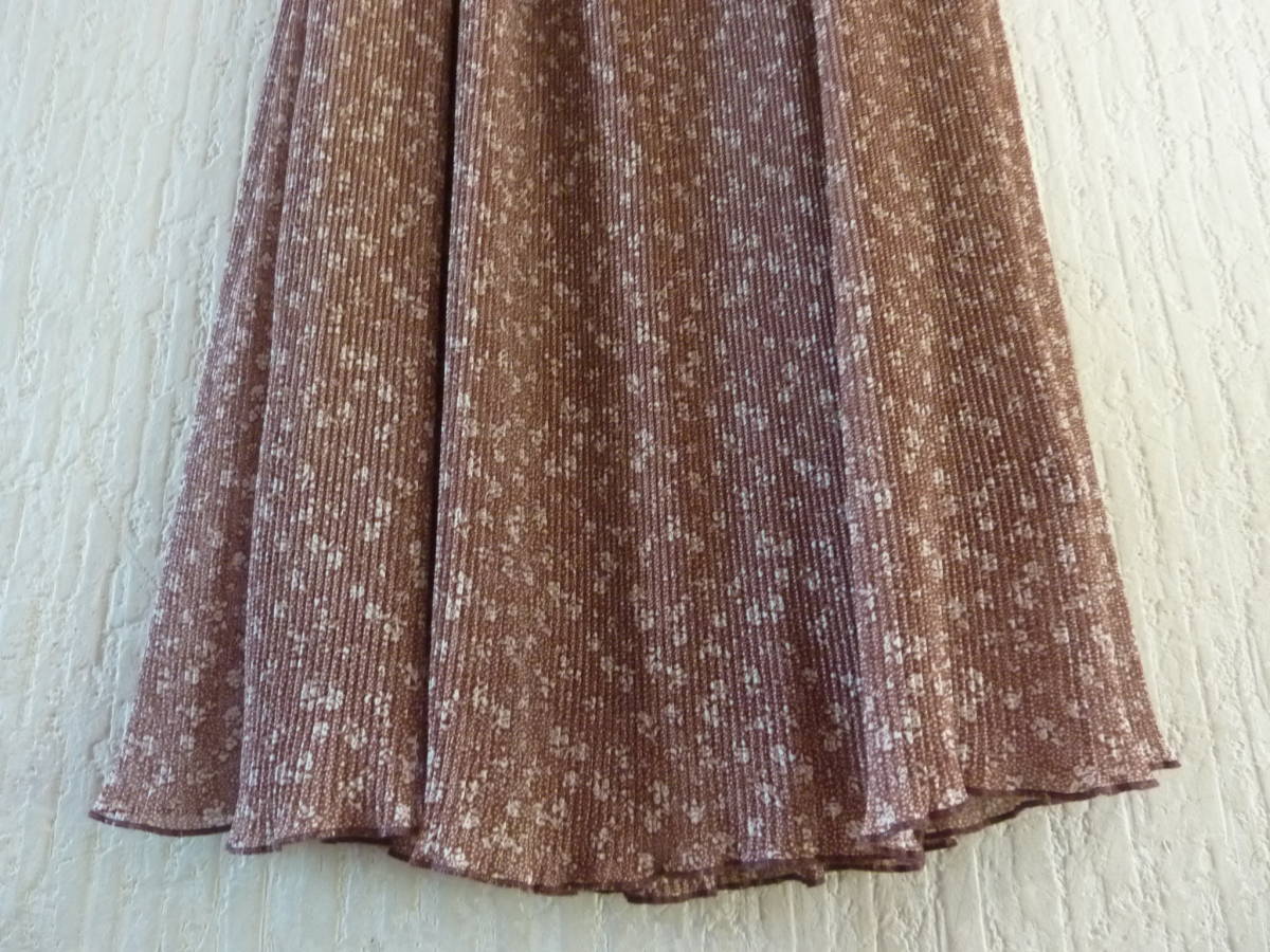 マイクロ プリーツスカート【小花柄】ロングブラウン系【赤茶色