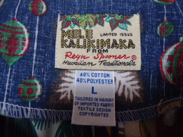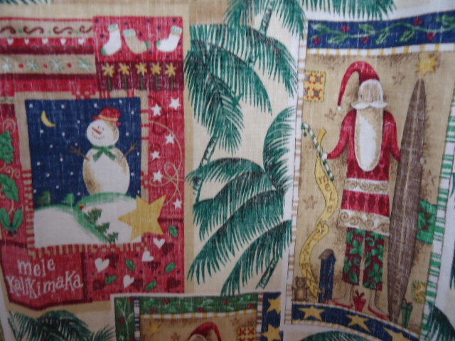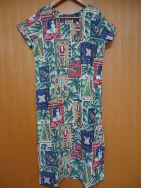 ハワイにて、USED物として、購入しました。レインスプーナー社製。2008年製限定物。コットン60%・ポリエステル40%混合素材です。カラーは、クリスマス柄です。かぶりタイプです。クリーニング済み。ハワイ製。なお、当商品のサイズ表示は、全てUSAサイズです。サイズ表示は、Lですが、平置き実寸を重視して下さい。なお、少々誤差は、ご了承下さい。肩幅約39センチ・身幅(脇の下)約55センチ・丈約126センチ・袖丈約20センチ・両サイドスリット約38センチです。目立ったダメージありませんが、USED物なので、古着に、ご理解のある方・24時間以内に、お手続き入力後、期限内にかんたん決済、出来る方のみ、ご入札をお願い致します。この商品は、1点物です。 ※※発送方法・送料は、レターパックライト郵便(追跡可能・補償無し)ですと、430円又は、レターパックプラス郵便(追跡可能・手渡し配達・補償無し)ですと、600円又は、ゆうパック送料着払い便(持ち込み割引有り・追跡可能・手渡し配達・補償有り・かんたん決済時は、送料0円ですが、送料のみ到着時支払い)です。※※ ☆★★★★★☆送料は、変わりますが、何点でも、同梱包可能です。数点落札されましたら、まとめて取引を、選択お願いします。☆★★★★★☆