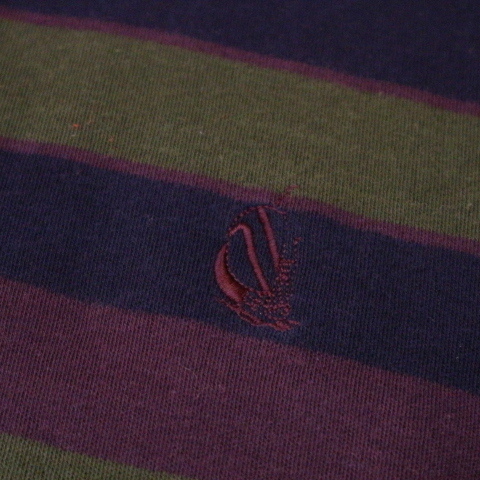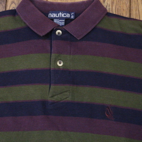 90s NAUTICA ボーダー 長袖 ポロシャツ L パープル グリーン ロゴ刺繍 ノーティカ