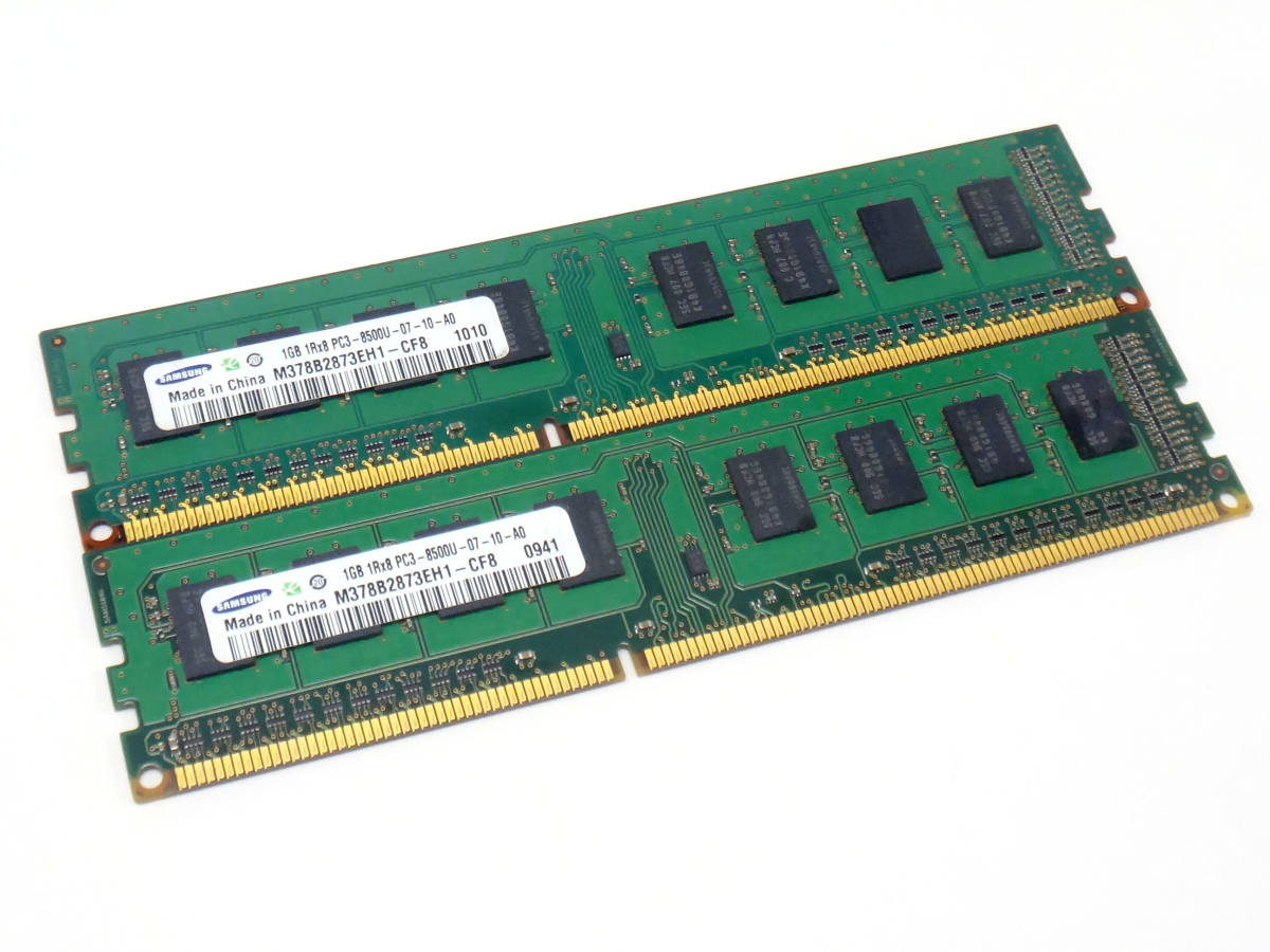 T3M05●【動作確認品】2枚組 Samsung DDR3 1GB×2枚 PC3-8500U デスクトップ用 メモリ 合計2GB 【メール便対応】