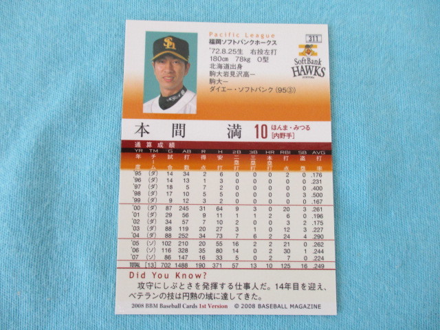 ★BBM 2008★1st Version〔311 本間満 福岡ソフトバンクホークス〕トレカ♪