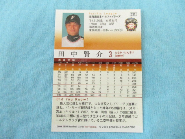 ★BBM 2008★1st Version〔231 田中賢介 北海道日本ハムファイターズ〕トレカ♪
