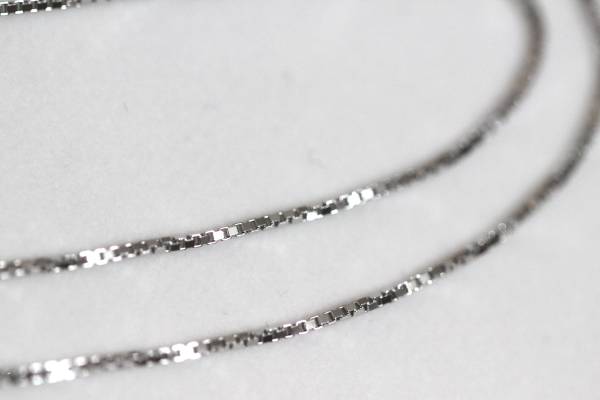 お手持ちのネックレス(鎖)を 手軽にイメージチェンジできます! 【ベネチアン/ベネチアチェーン】 四角いボックス型のパーツが連なった形状のチェーンです。 面が反射してキラキラと輝くのが特徴です。 あまりチェーンらしさを出したくない方にオススメです。 エシカル ジュエリー 【サイズ】 チェーン: 約40cm 線径: 0.8mm 【素材】 材質: ロジウムコーティング(プラチナ仕上げ) 【生産国】 日本製 《詳しくはコチラへ》 |