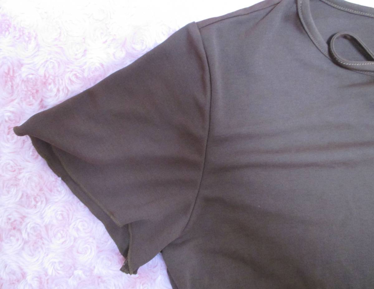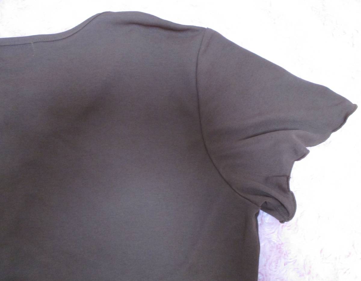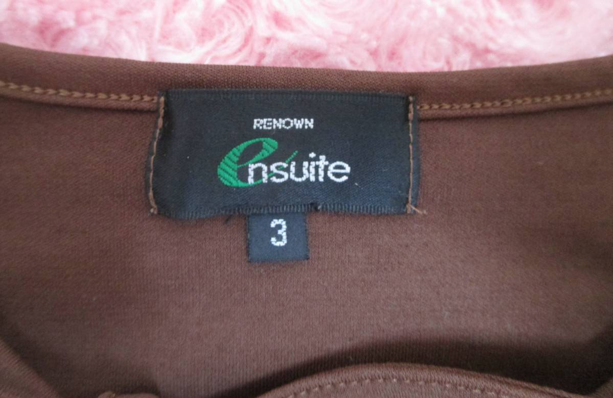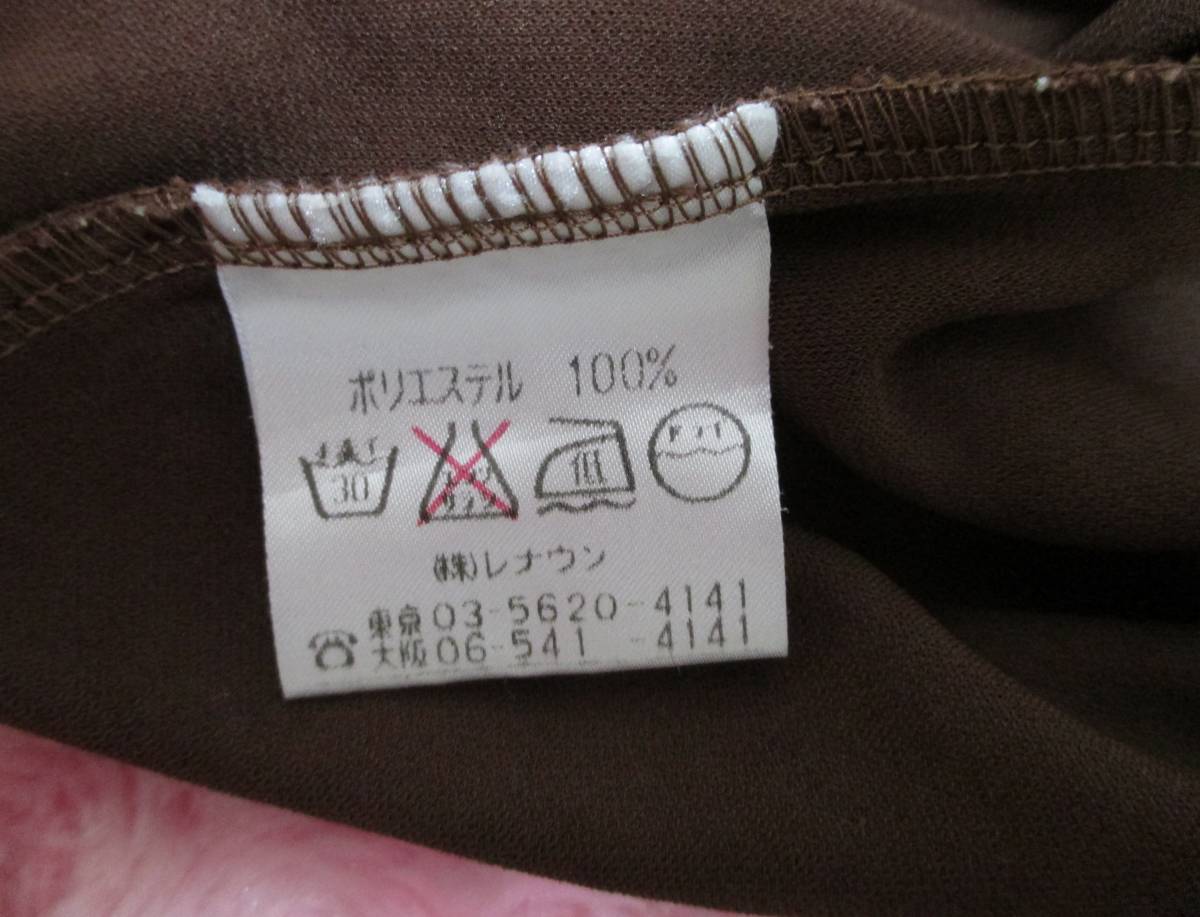 サイズ約 肩幅45,身幅54、袖丈17.5,着丈58cmほどの大きさです。あくまでも個人の主観での美品です。㈱レナウン 濃い茶色半袖リボンタイカットソーensuiteサイズ3大きいサイズ 日本製 ポリエステル100%