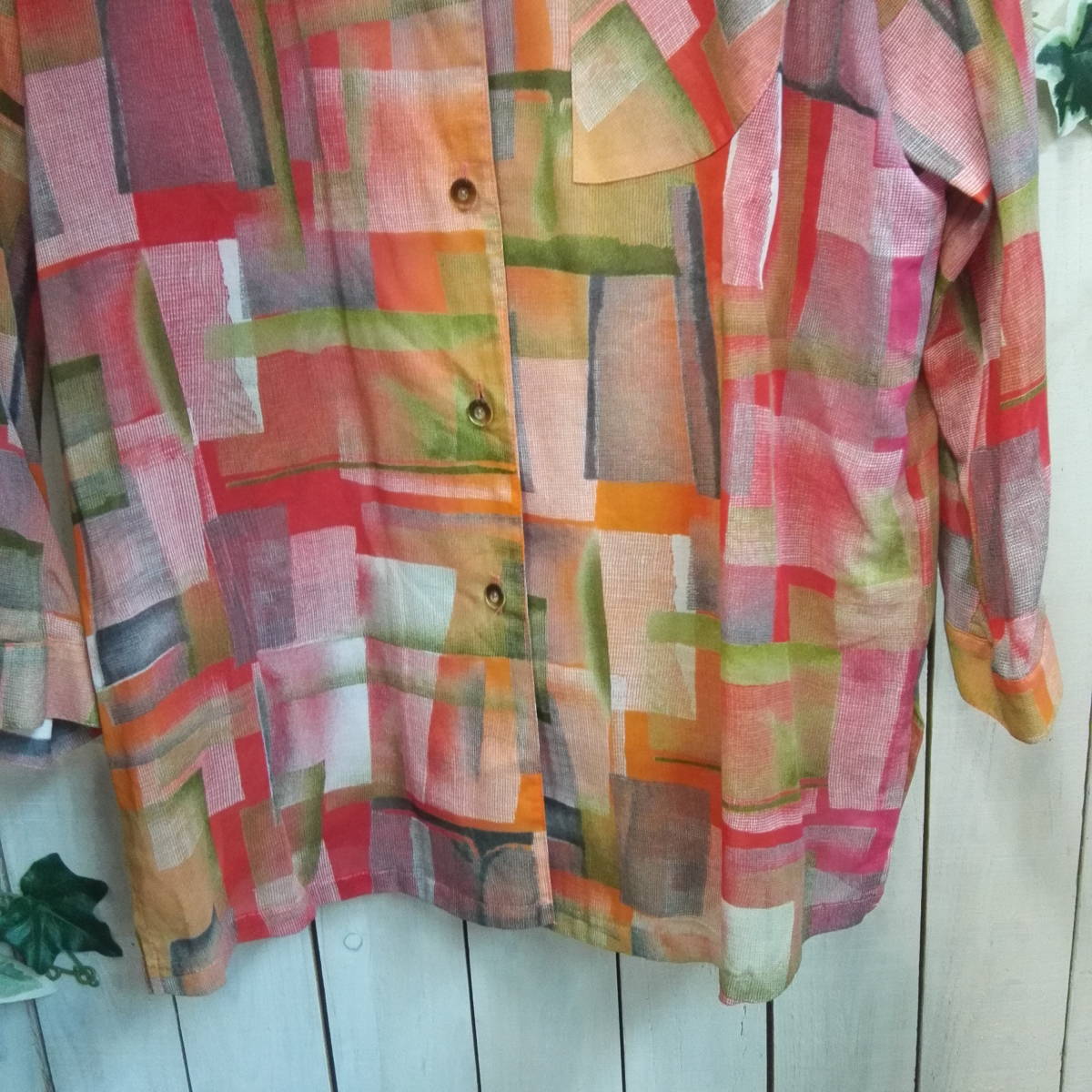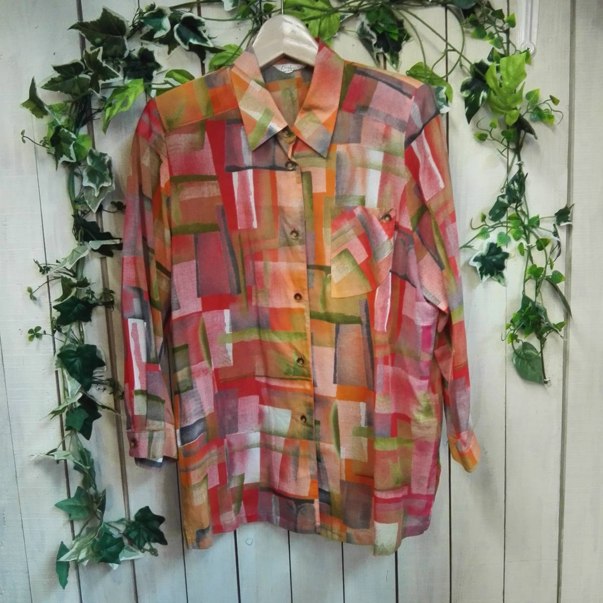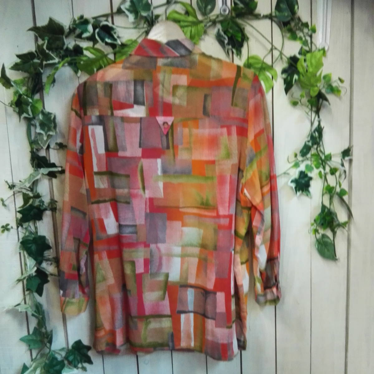 ★A584★Dialougue★幾何学プリント★長袖シャツ★サイズF 日本製 綿100%