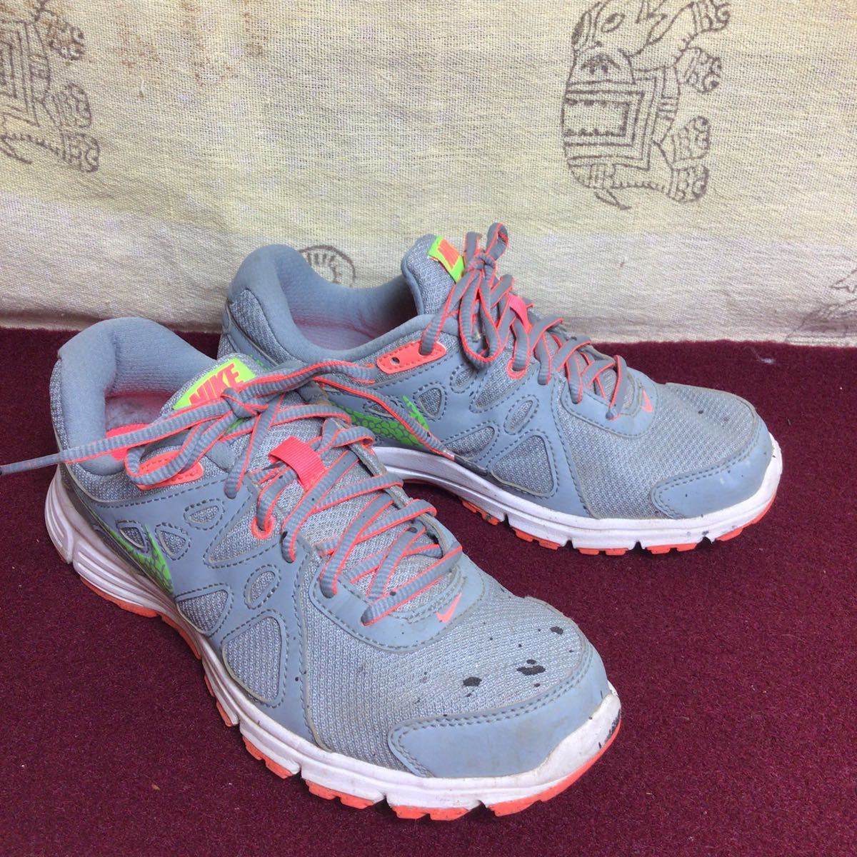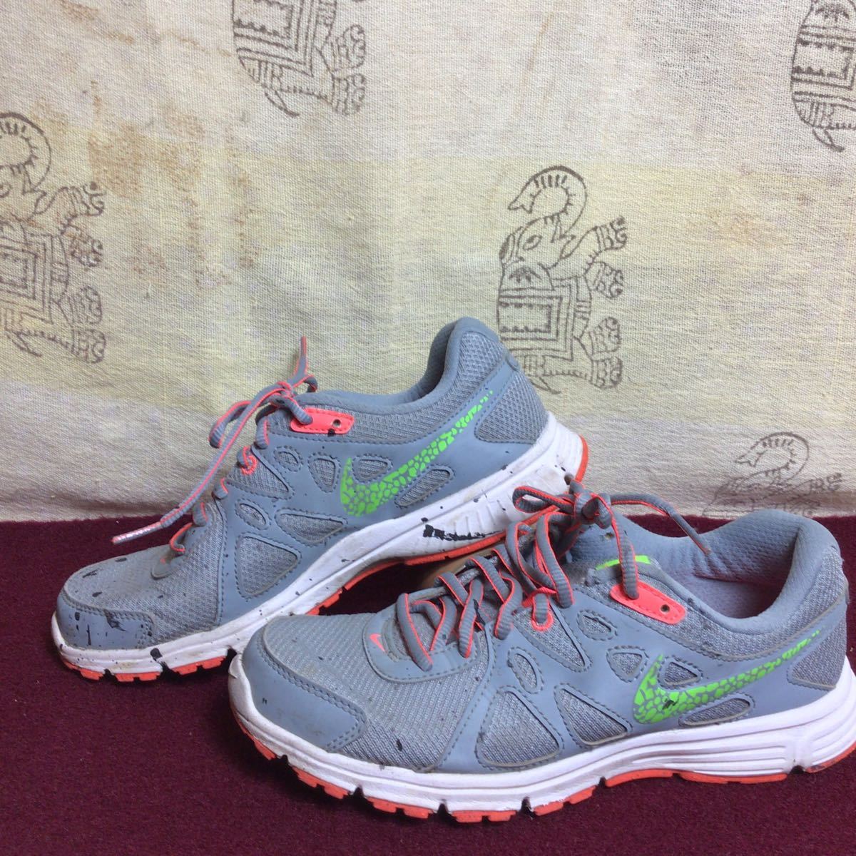 【売り切り!送料無料!】A-115 NIKE!ナイキ!554901-027!24.0cm!スニーカー!ランニングシューズ!グレー!蛍光オレンジ!緑!作業用!訳あり!中古!