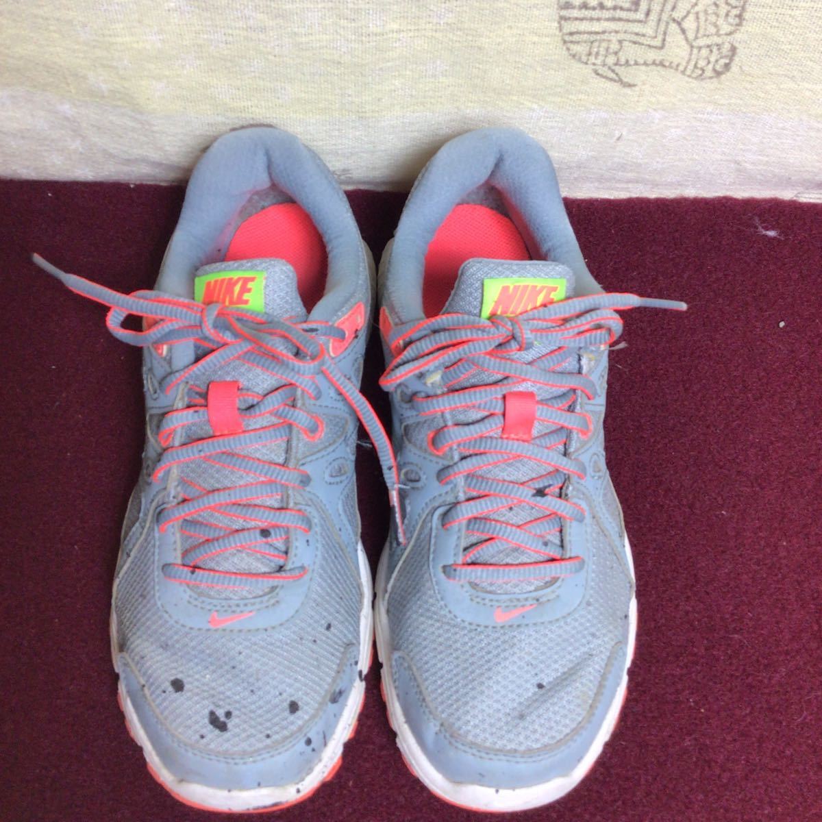 ナイキのランニングシューズですが、黒色の汚れが目立つので外の作業用などにもいかがでしょうか。