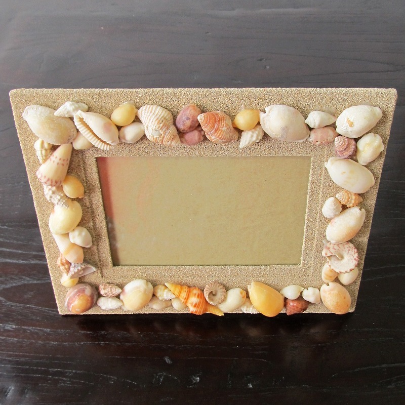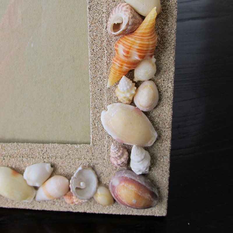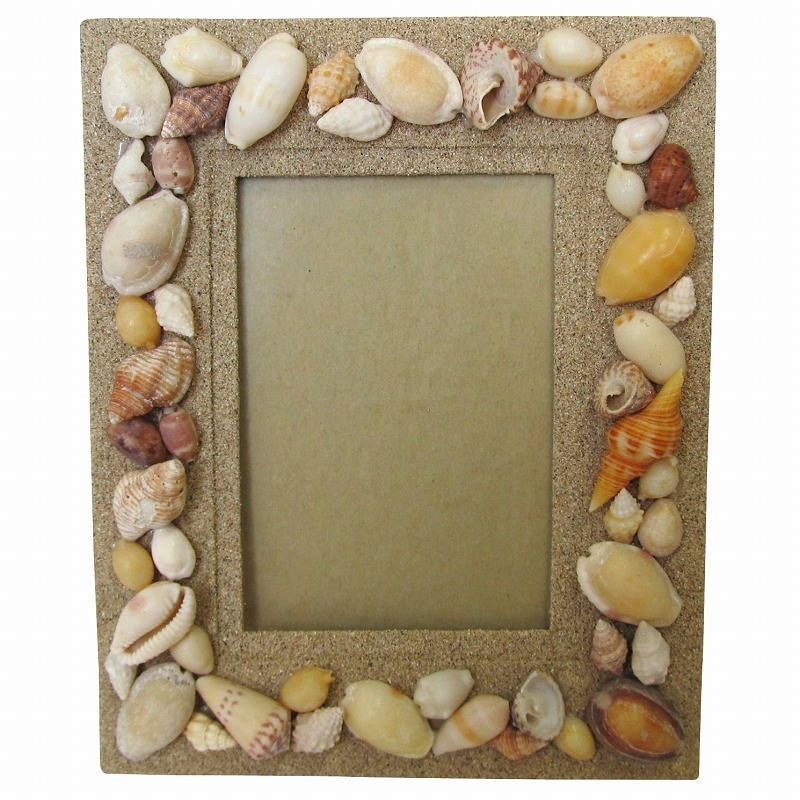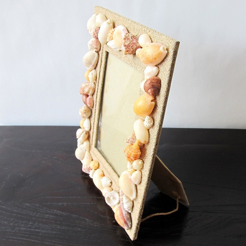 夏の思い出の写真を飾るのにオススメの貝殻とビーチの砂で作ったかわいいフォトフレームです。 L判の写真が収納できます。縦置のみとなり横置きはできません。