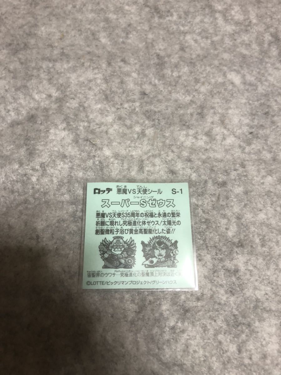 ビックリマン第35弾 S-1 スーパーSゼウス 開封後テッシュで簡易清掃品 です。細かい傷などあるかもしれませんので極度に状態を気にされる方は入札をお控えください。ノークレーム、ノーリターン、ノーキャンセルでお願いします。発送は定形郵便(補償なし)、レターパックライト(補償なし)、ゆうパケットおてがる版(補償なし)からお選びください。