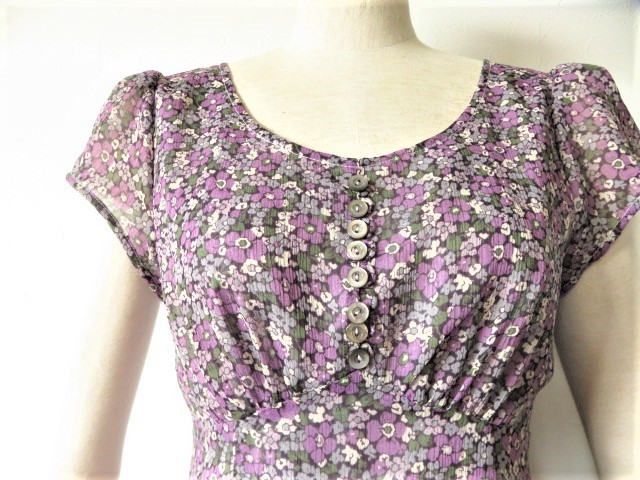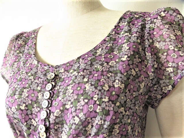 ■上質美品【Nolley’s】ノーリーズ 高級 シフォン ワンピース【38】9号 M 紫色ワンピース  送料185円 o178