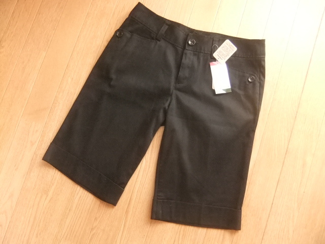 新品タグつきの、ベーシックで着回ししやすい黒のハーフパンツです。