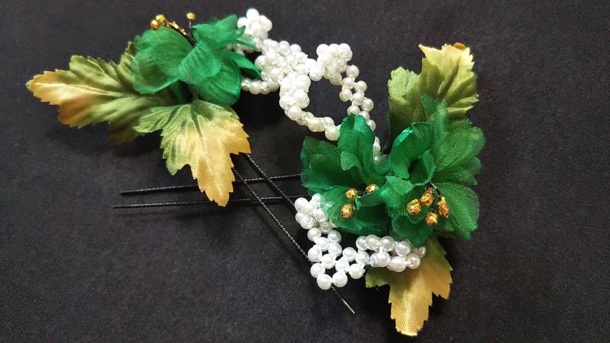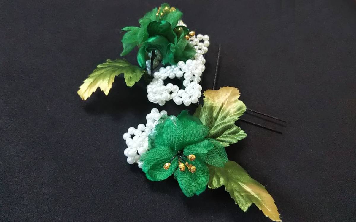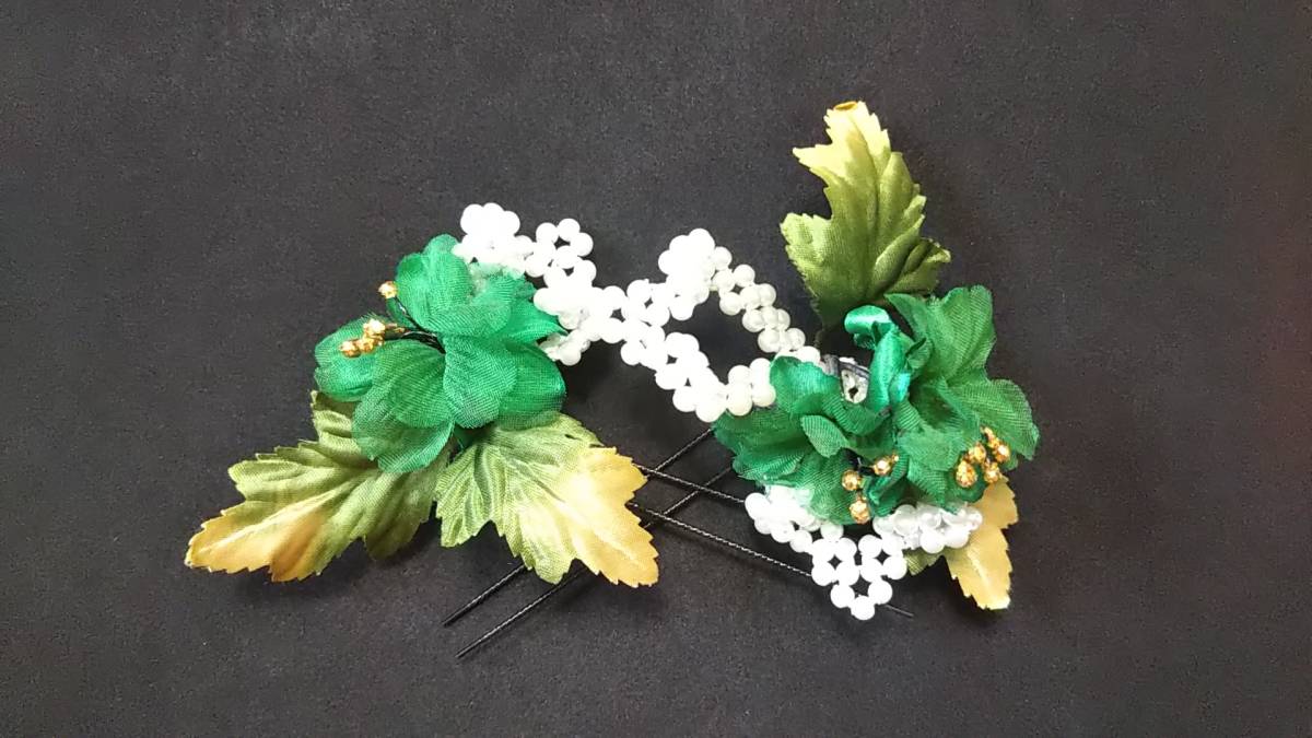 髪飾り ヘアアクセサリー Uピン 花型 パールビーズ付 浴衣や着物の和装やフォーマルにも グリーン系
