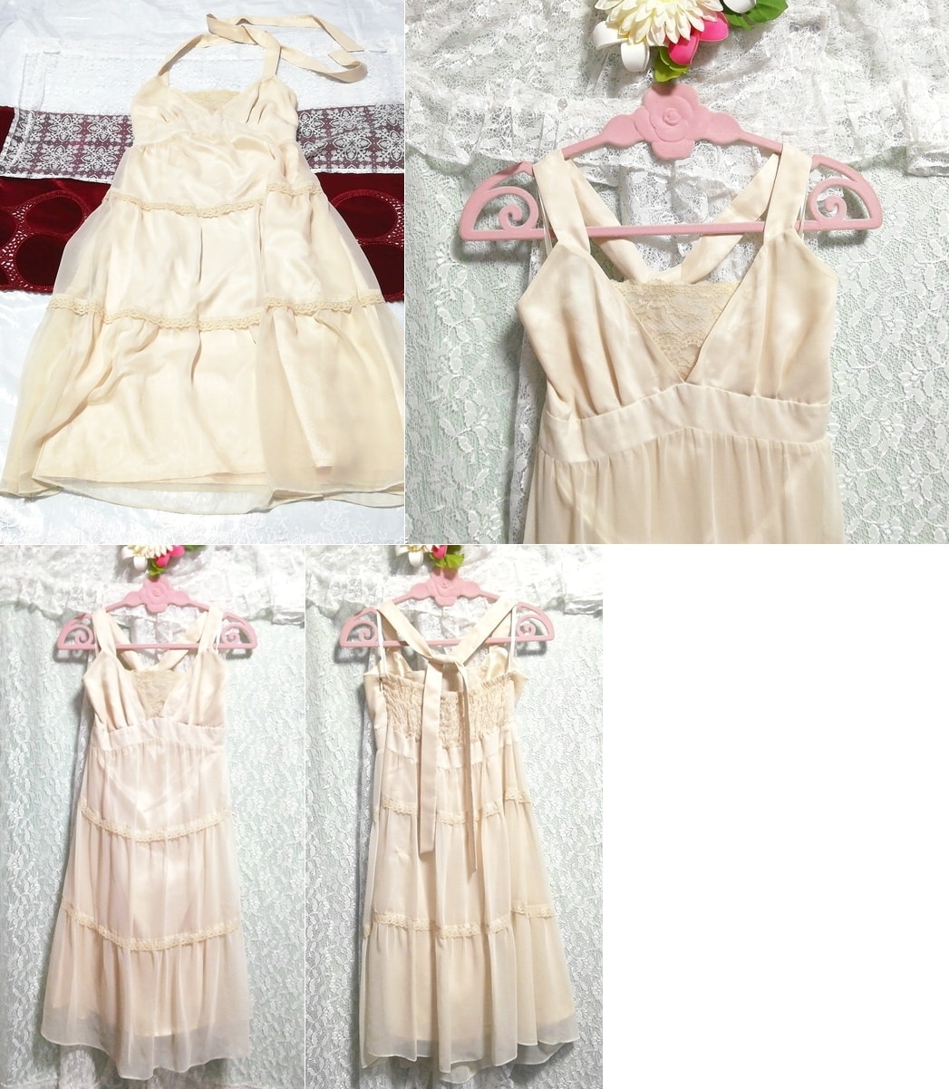 亜麻色シフォンネグリジェキャミソールワンピースドレス Flax color chiffon negligee camisole dress