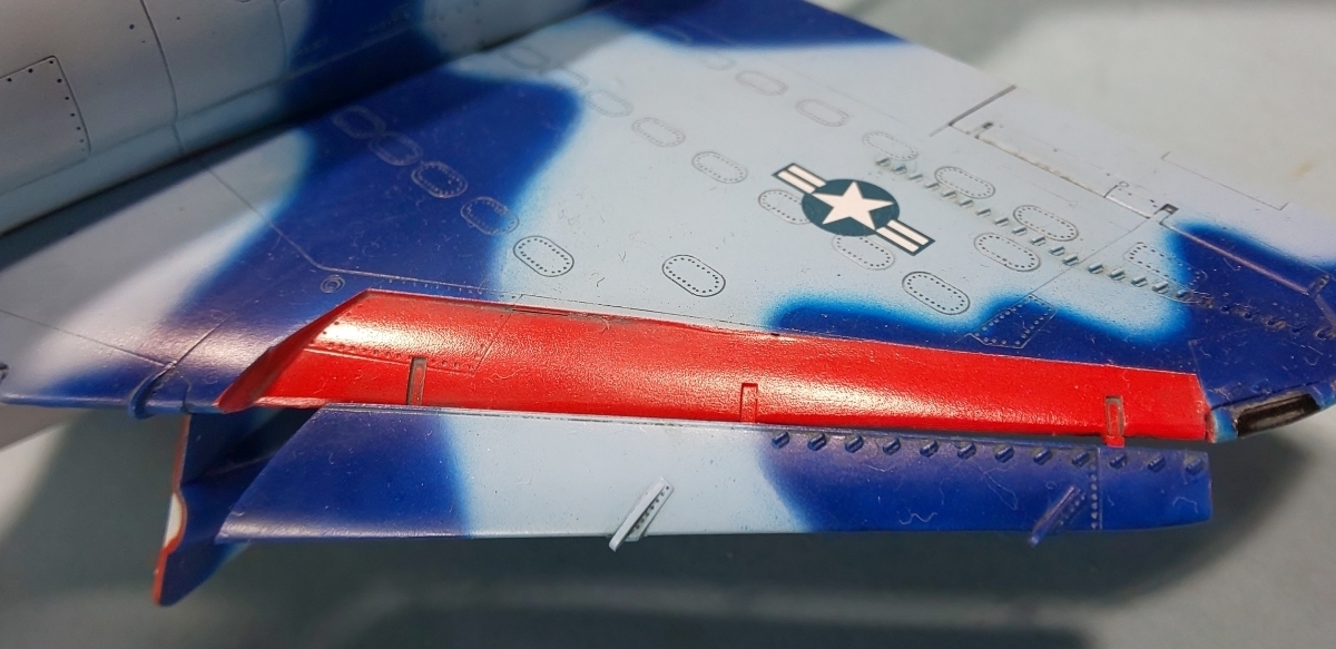 基本的にストレート組ですが射出座席はレジンパーツに脚パーツにはパイピンクをしてます。前縁フラップは実機のように段差を無くしてます。