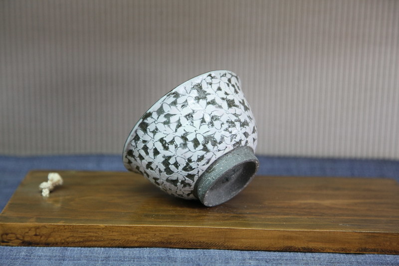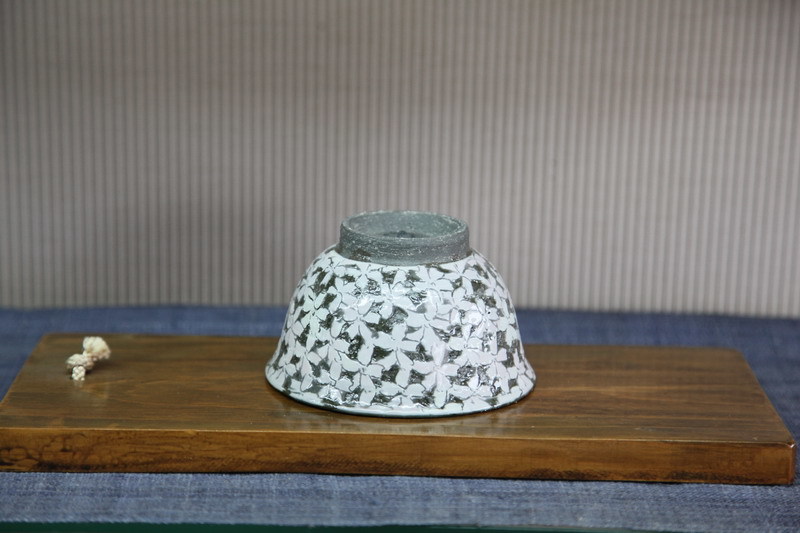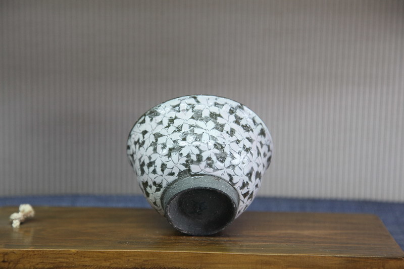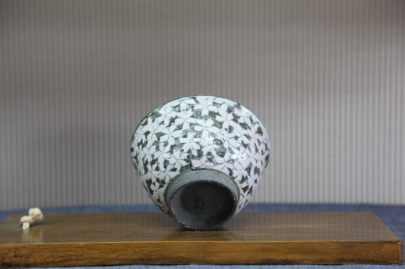 器の外側には、桜の花びらを丁寧に掘った文様が、