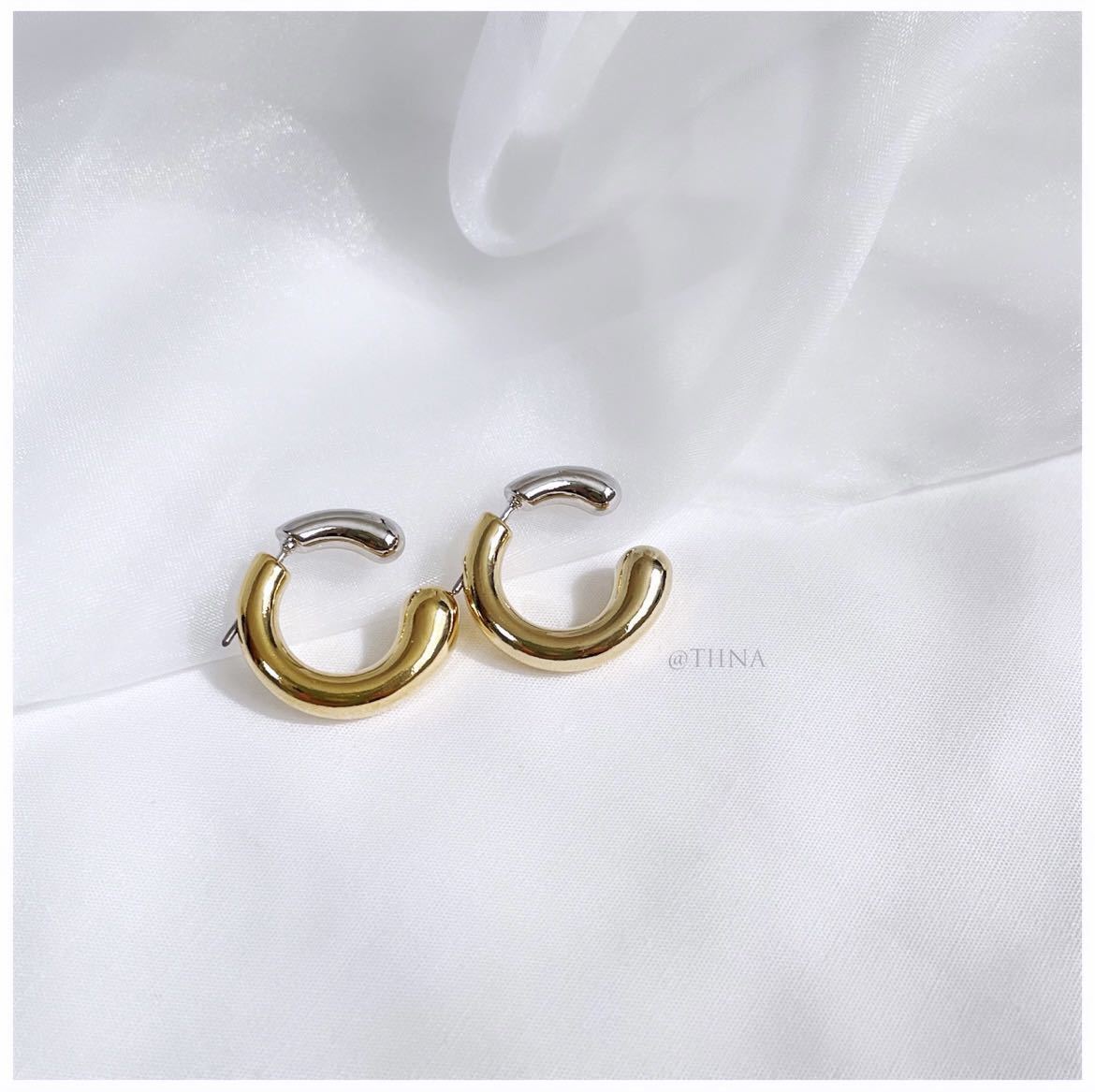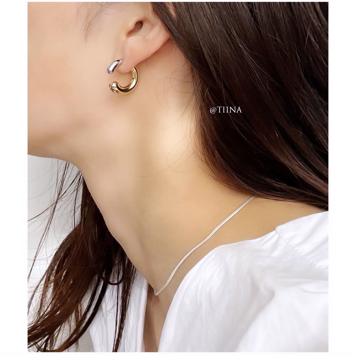 ピアス フープピアス チャンキー カーブ ツートン アクセサリー ビンテージ アンティーク トレンド 可愛い ねじり バイカラー ミックス 2色 2カラー ワンポイント チタンポスト ニッケルフリー オフィス デザイン 低アレルギー ゴールド シルバー ぷっくり C型 バックキャッチ 金属 安心 韓国 高級感 高品質 アクセント プレゼント ギフト パーティー 大人 誕生日 結婚式 披露宴 クリスマス 母の日 女性 彼女 春夏 秋冬 メーカー ショップ おしゃれ レディース ジュエリー 入学式 入園式 卒園式 卒業式 結婚式 七五三 tiina