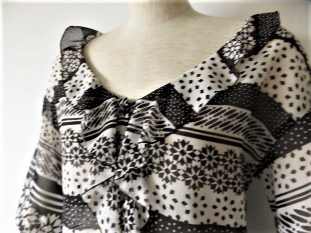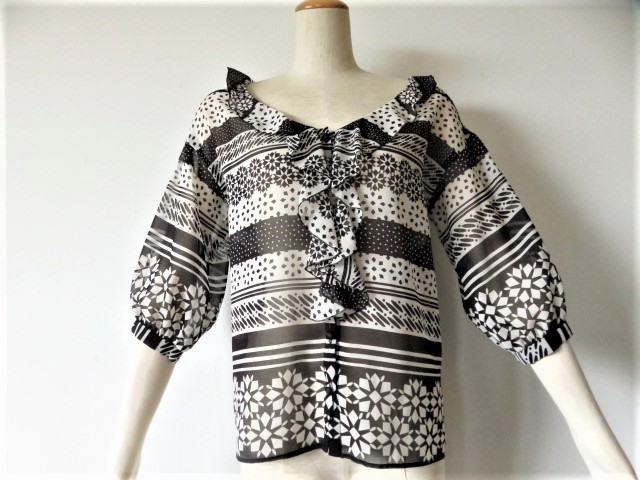 ■新品同様美品【impression de paris Spick & Span】スピック&スパン 高級シフォンブラウス モノトーンブラウス 9号~11号L W491