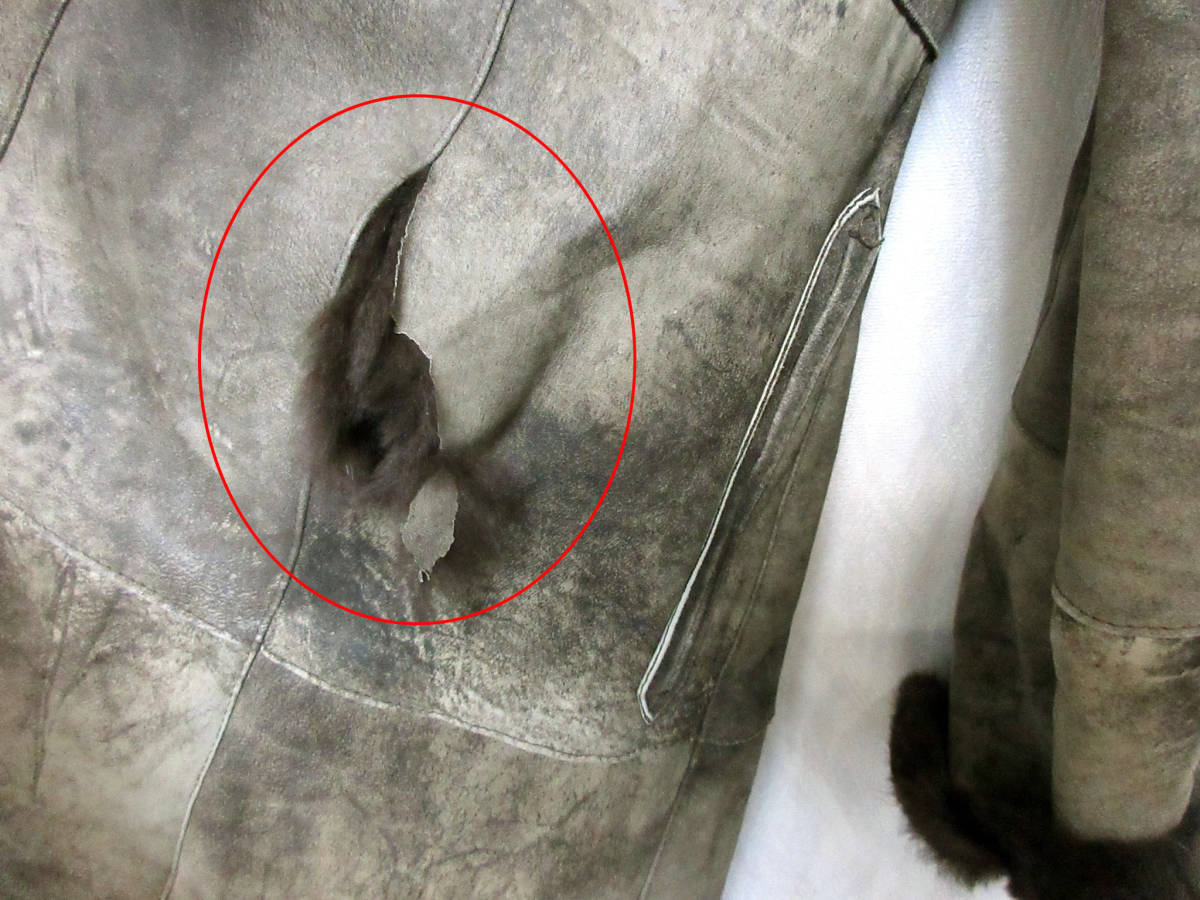 右腰のあたりに10cm位に渡って生地の破れがあります(画像5.6.8枚目参照)。