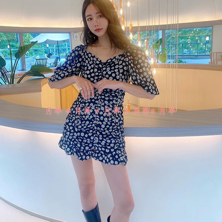 胴体はゴムとギャザーでくしゅくしゅしており、裾フリルの可愛いミニワンピース。