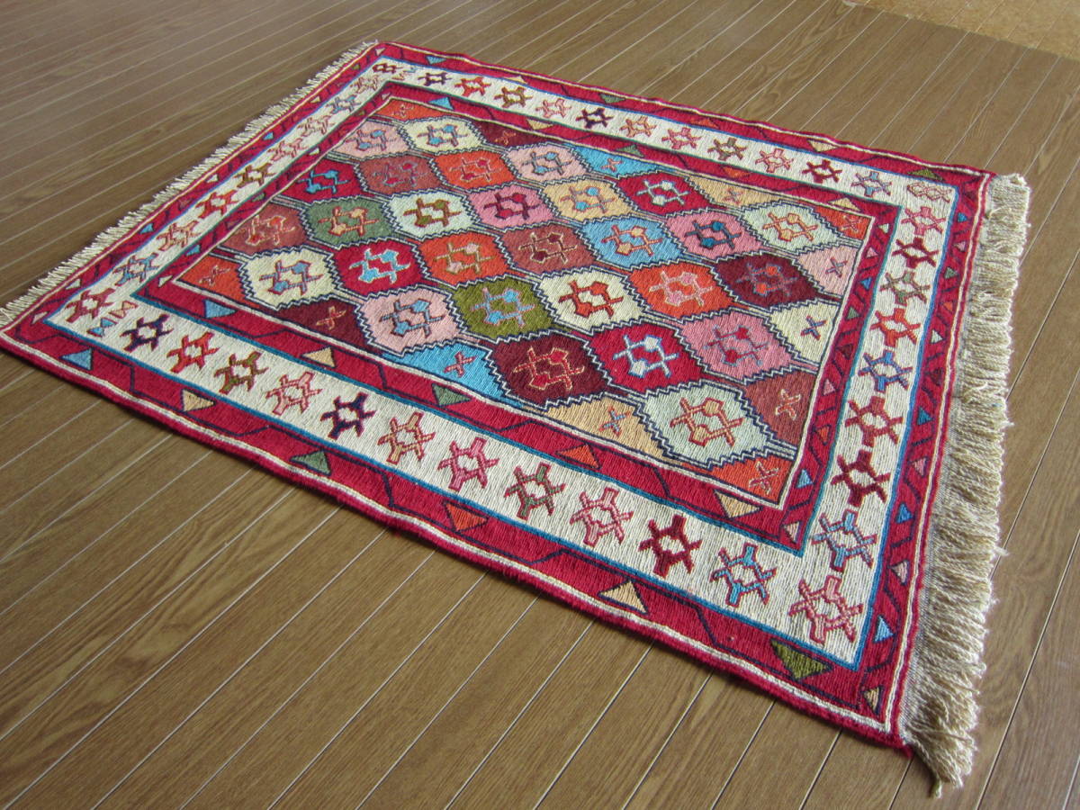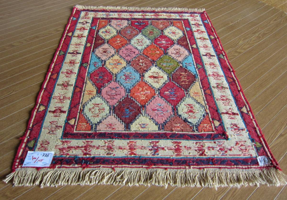 | 商品説明 | ★素材 : ウール・手織り・スマック織り ※スマック織りとは、イランのキリムの織り方の技法です。 土台の縦糸と横糸の上にもう一本横糸を絡めるように 巻き込んで織っていく高度なテクニックで、 刺繍のように細かな文様を描けることができます。 スマック織りは裏面に模様の糸を渡してあるので 片面使いのキリムになります。 ★サイズ : 約 100×83 cm (房を含まない長さです) ★産地 : イラン・アゼルバイジャン ★状態 : 新品 kxpgs342+ZIBACARPET絨毯 kxpgs342+ZIBACARPET取扱いペルシャ絨毯 FARSHEZIBA_KILIMキリム |