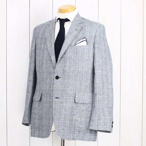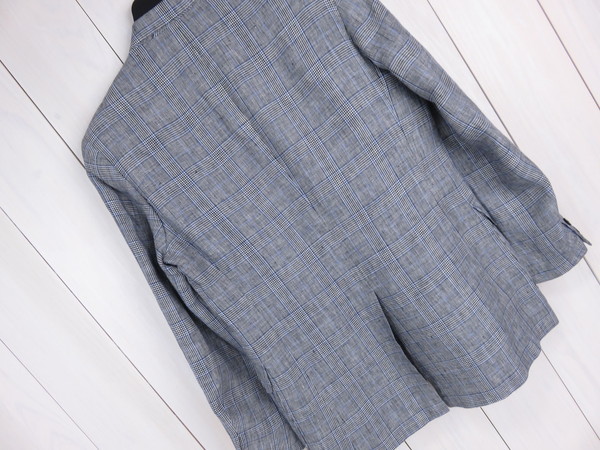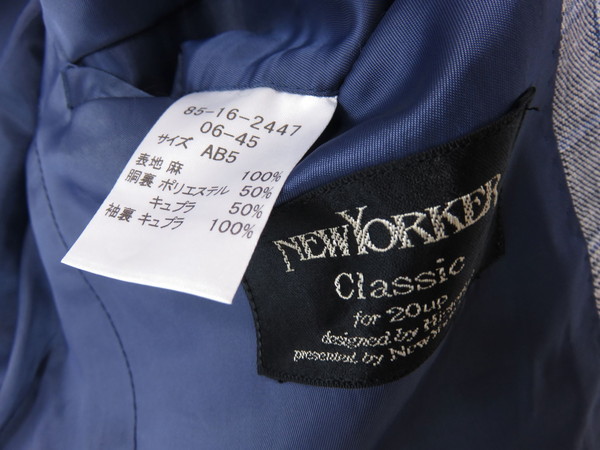 【送料無料】ニューヨーカー NEWYORKER 春秋 グレンチェック柄 麻100% テーラージャケット グレー AB5 M