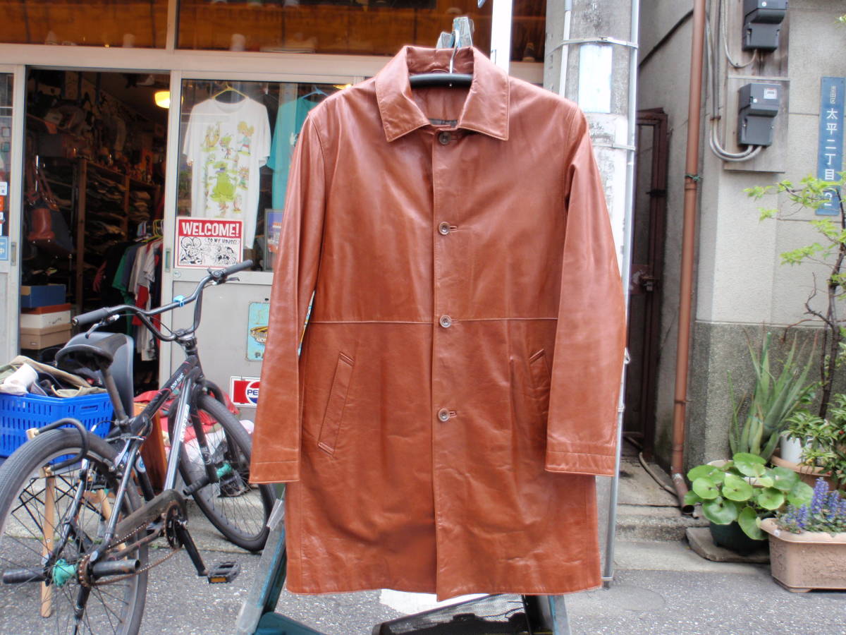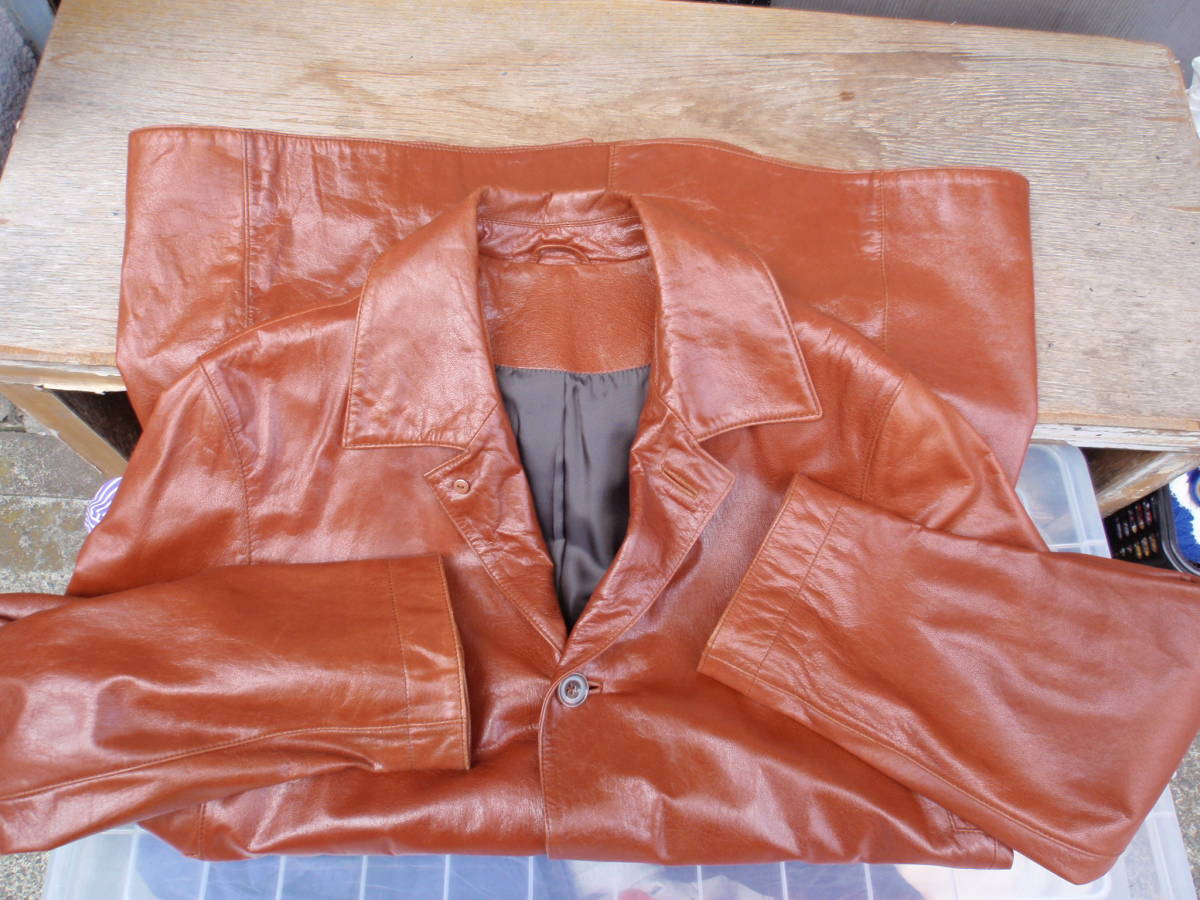 中古品ですので少し使用感ありますが、あまり使って無かったので目立った汚れや傷は無く状態は良いです。スーツカンパニーの羊革(ラム)を使った茶色いロングコートになります。サイズはLL?表記ですが、実寸では平置きで肩幅47センチ、身幅60センチ、着丈90センチ、袖丈63センチ位です。正規品。