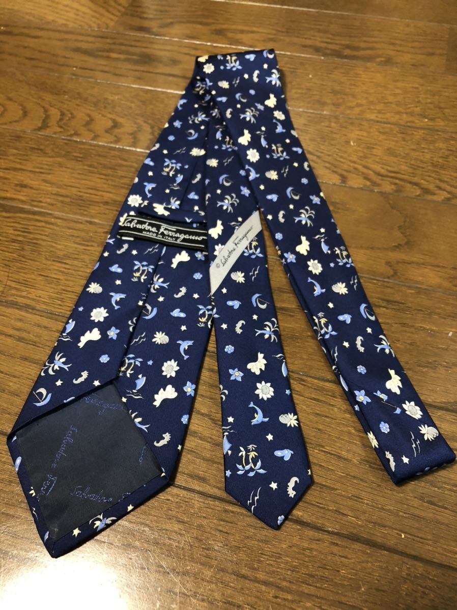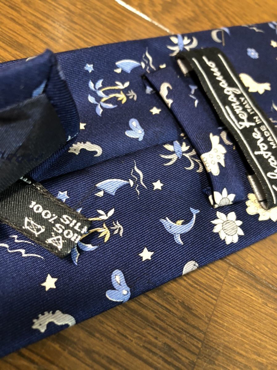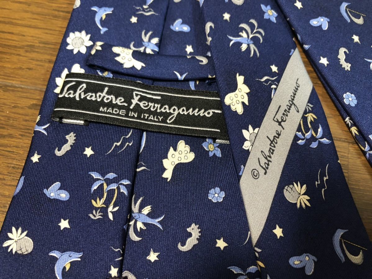 その他:サルバトーレフェラガモのネクタイです。フェラガモらしいドット柄ですが、近くで見るとイルカがデザインされています。ギフトやプレゼントにも最適です。