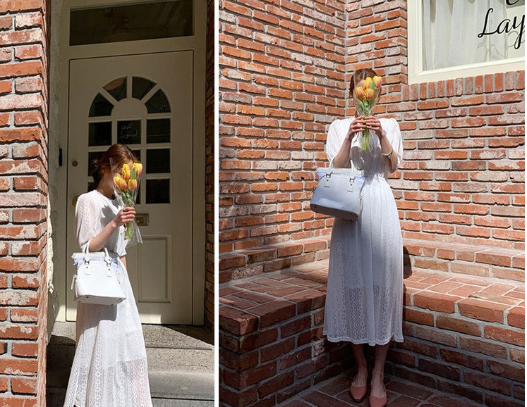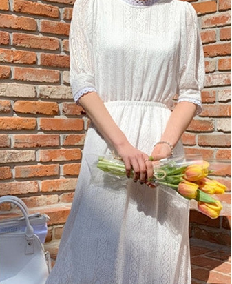 ☆最終セール 2.980円→2.780円☆ レースワンピース ファッションドレス お洒落なワンピース ウェストゴム絞り