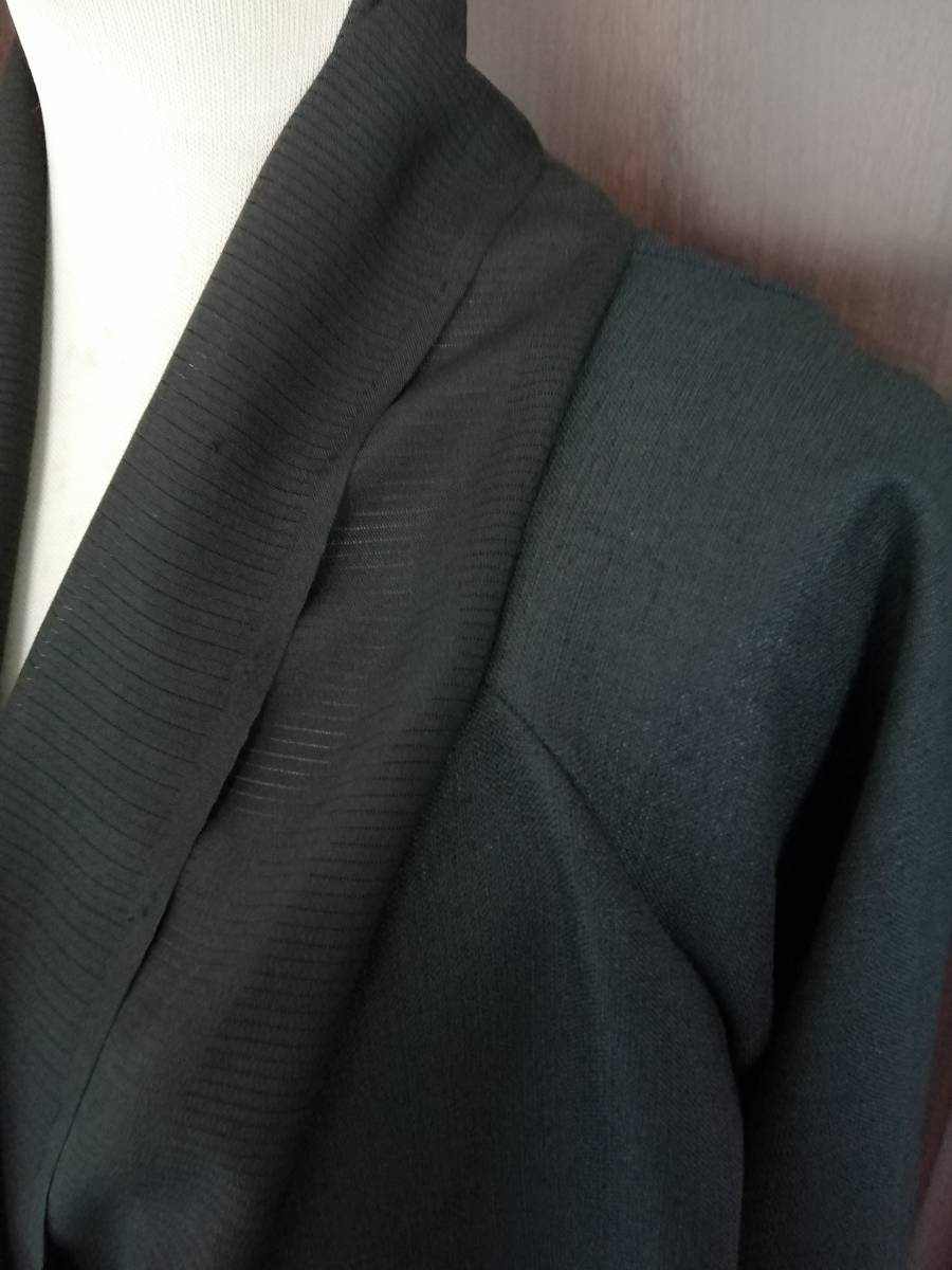 即決LL,2L,3L,4L大きいサイズ,80cm丈ストール襟,リネン混&黒絽,着物リメイクコート.麻混の春夏コート,,七分袖スプリングコート