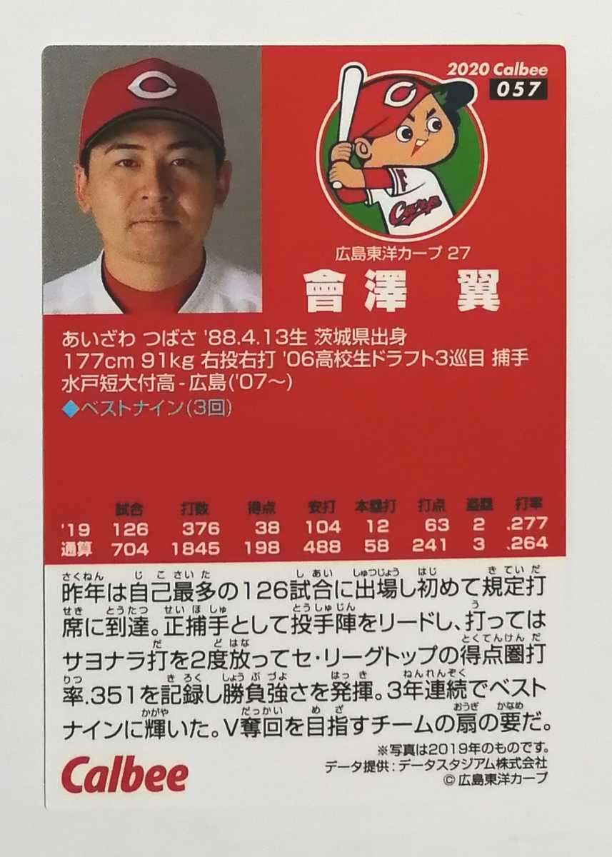 會澤 翼(057)広島東洋カープ/2020プロ野球チップス第1弾カード【即決】