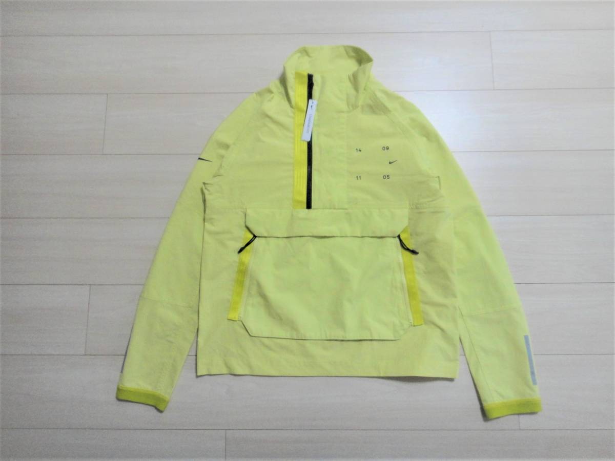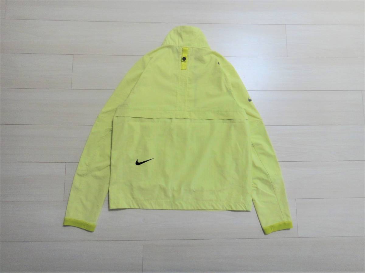 NIKE(ナイキ)のジャケットです ■新品未使用です タグも付いております(紙タグに少々ダメージがあります) ■モデル名はNIKE SPORTS WEAR TECH PACK WOVEN JACKETです ナイキのTECH PACK(テックパック)シリーズのものです ■サイズはMになります 素人採寸ですが 身幅(脇の下で)56センチ 身丈68センチありました ■本体の生地は100%ポリエステルです ■プルオーバーのハーフジップのスタイルとなっております ■色は薄い黄緑系でパステルカラーとなっております ■袖口上には反射素材が使われております 夜間の使用に便利です ■パッカブルです 正面のポケットに収納出来ます 持ち運びに便利です Dリングが付いております(写真8枚目をご参照下さい) ■背面にはストラップが付いております ■右袖と背面にはナイキのマークが付いております ■ナイキのファンの方いかがでしょうか 是非よろしくお願い致します