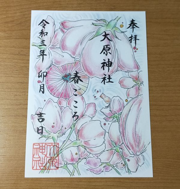 ◆大原神社(千葉・習志野・実籾)◆御朱印「春ごころ」 令和3年(2021年)4月 4月限定 |